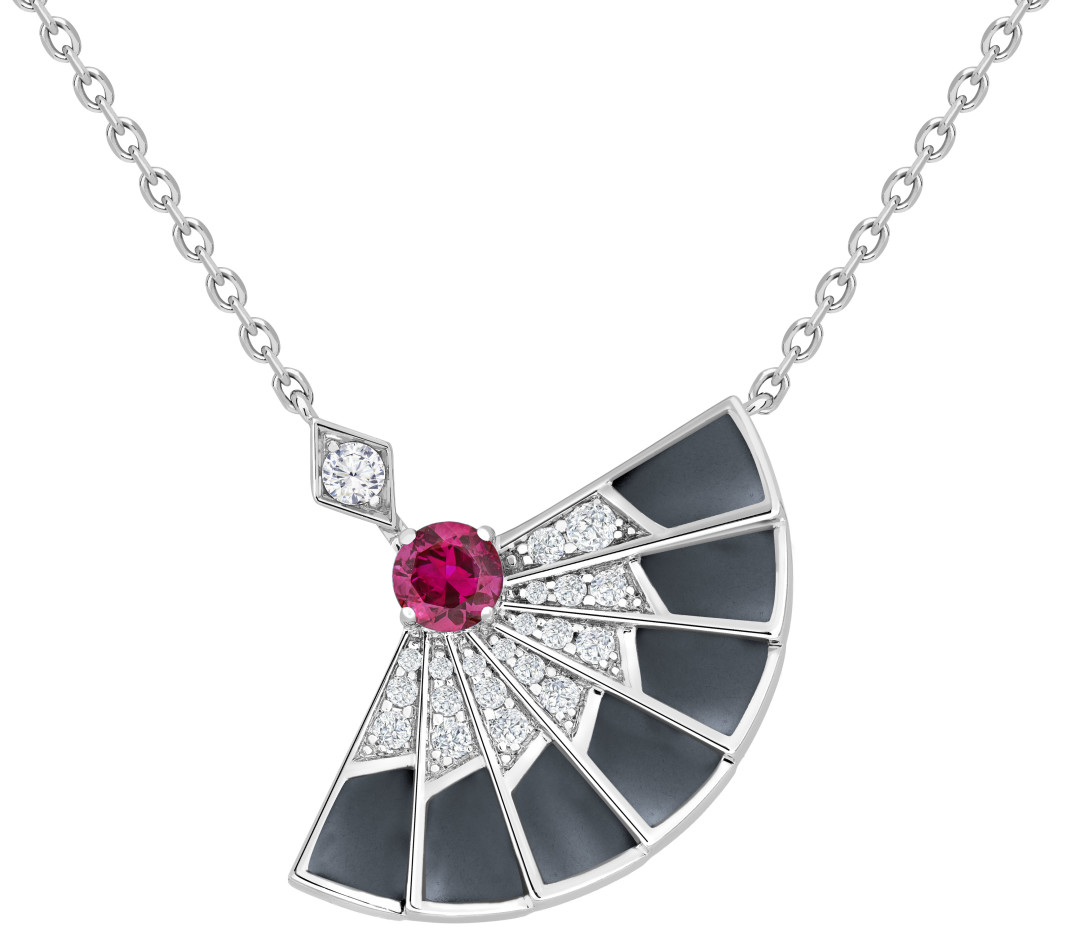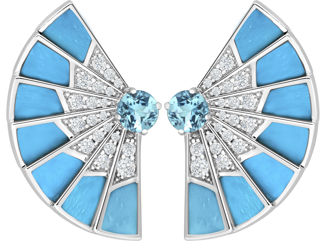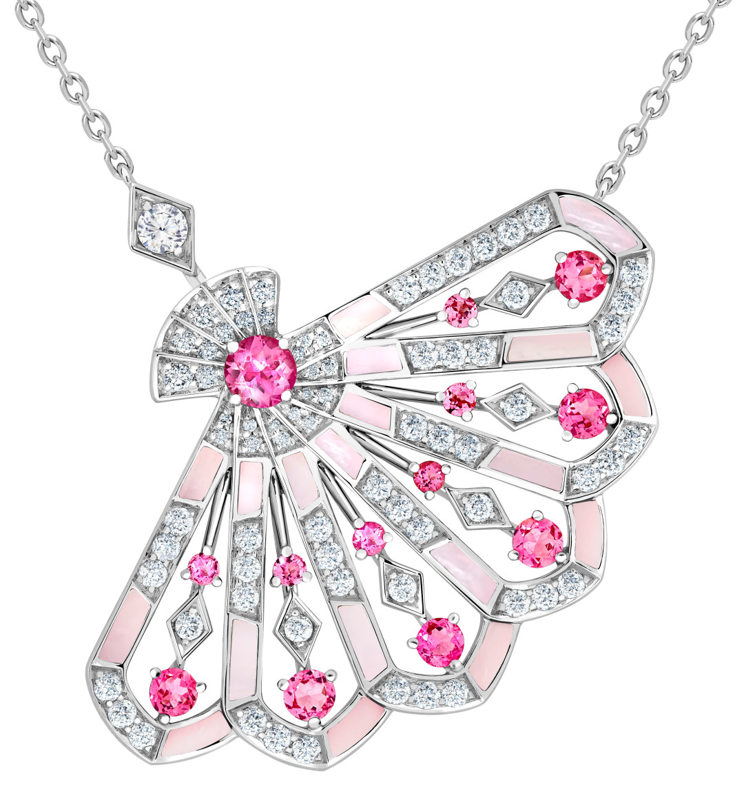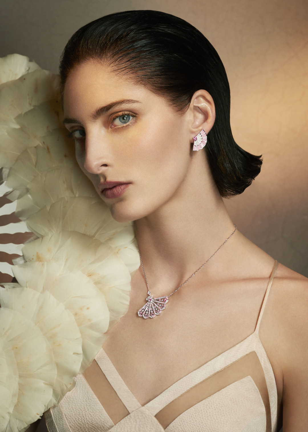 Уникальность украшений заключается в их разнообразной цветовой палитре, которую удалось получить благодаря сочетанию драгоценных камней и самоцветов. Так в Fanfare Symphony объединились розовый турмалин и розовый опал, изумруд и малахит, сапфир и лазурит, аквамарин и бирюза, желтый сапфир и кахалонг, рубин и гематит, классический белый бриллиант и перламутр. В коллекцию вошли серьги, кулоны и асимметричные кольца.