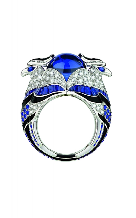 Синие перья упали с кончиков крыльев алмазного фазана. А хозяйственный ювелир Вебстер решил, что не пропадать добру — и обернул их вокруг пальца открытым кольцом с танзанитами и бриллиантами. (ДЛТ)