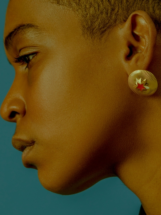 Новые серьги менее крупные, но выдержаны в той же советской стилистике — все три пары украшены красной звездой и сделаны из серебра, эмали и красного бархата. Купить их пока можно только по предзаказу в Instagram @dressuphero, но скоро марка выпустит коллекцию из более экономичных материалов, которая всегда будет в наличии в студии на Моховой, 45. «Производство одежды мы пока приостановили, хотим вплотную работать со стайлингом, — объяснял дизайнер. — Если девушка не готова надеть советское пальто или платье, то золотые украшения под тотал-блэк купит с радостью».