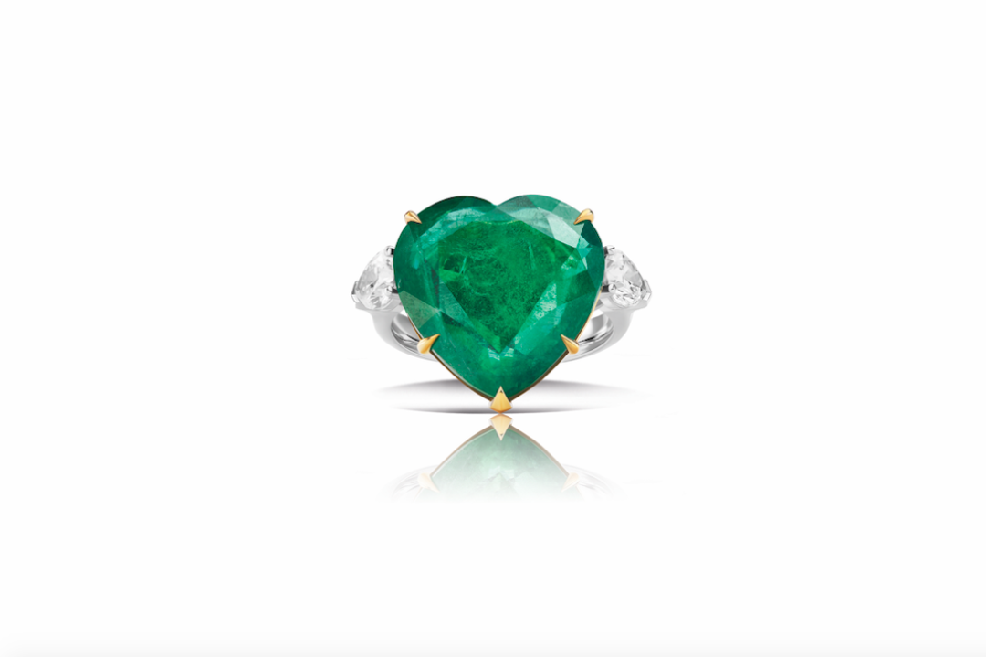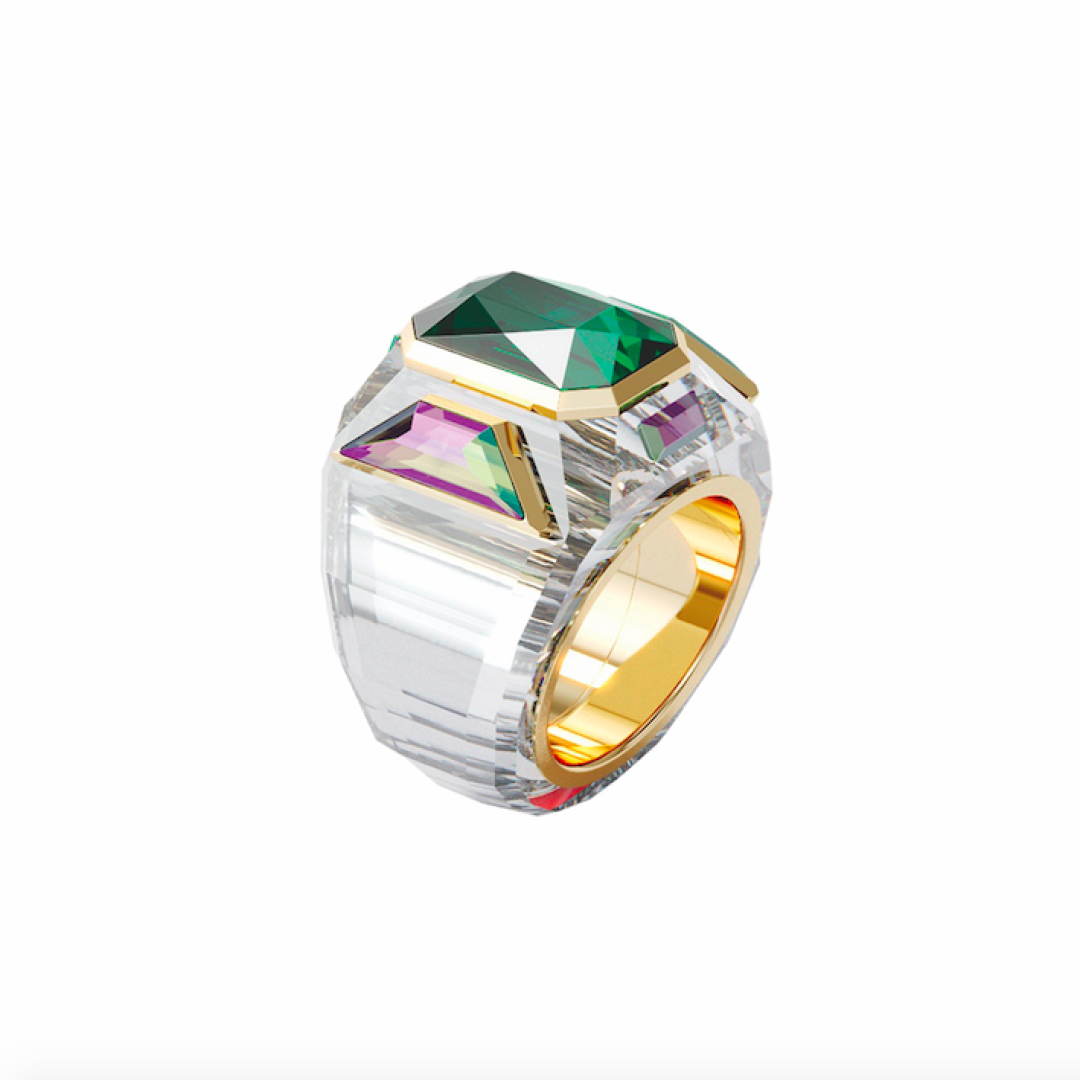 Перстень-печатка Chroma вырезан из цельного кристалла. Позолоченный металл лишь обрамляет зеленый «центр» и служит внутренним ободком.