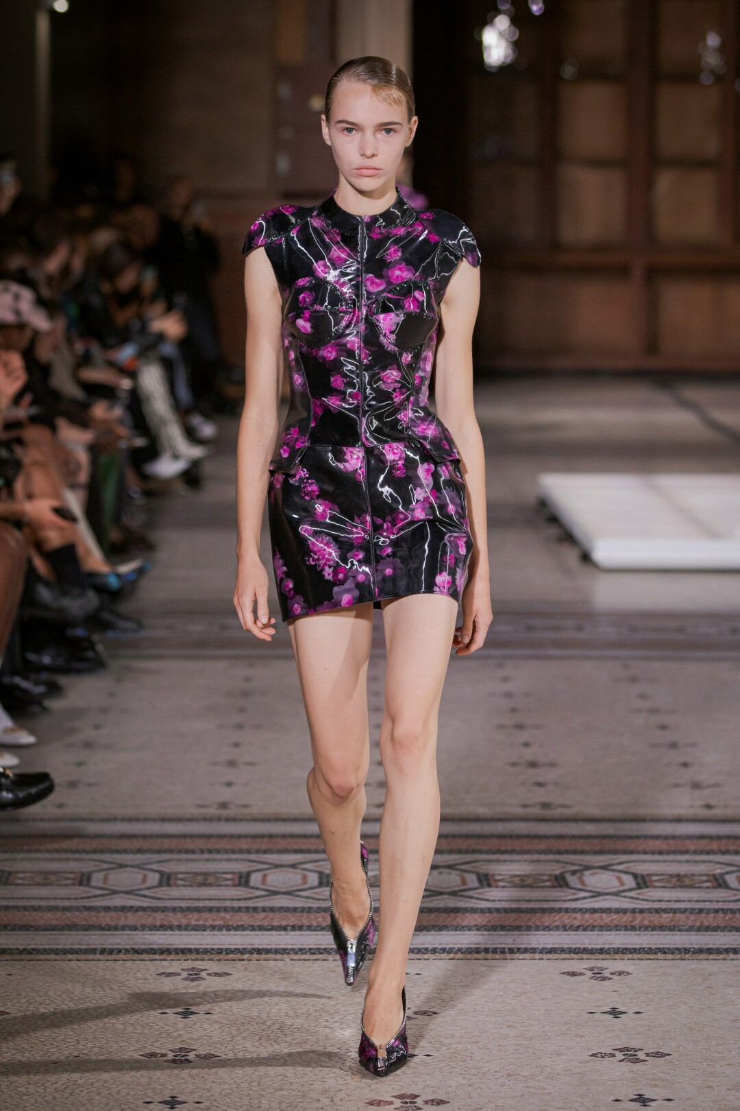 Результат финального шоу с участием двух пульверизаторов, ножниц и Беллы – платье-пшик из распыленной и на редкость зловонной полимерной взвеси с хлопковыми и синтетическими волокнами. Эксперимент отсылает нас к показу Маккуина 1999 года, где два робота брызгали в Шалом Харлоу красками. Краски были ярче, пульверизаторы больше, а Маккуин лучше.