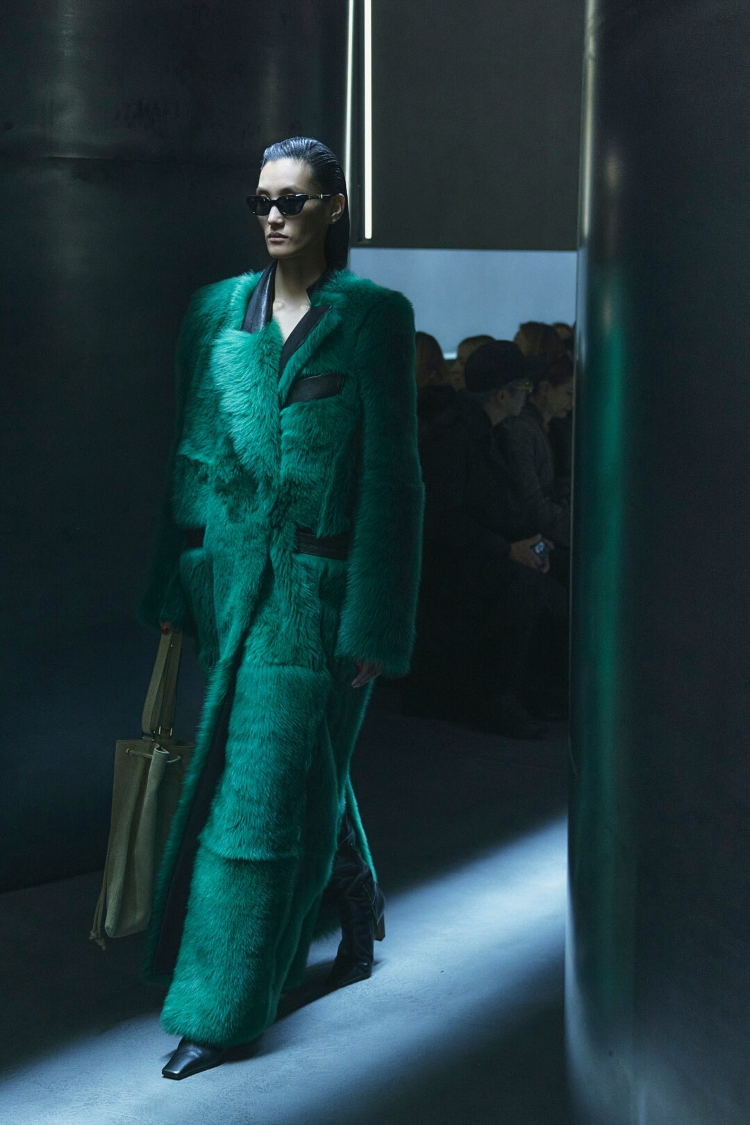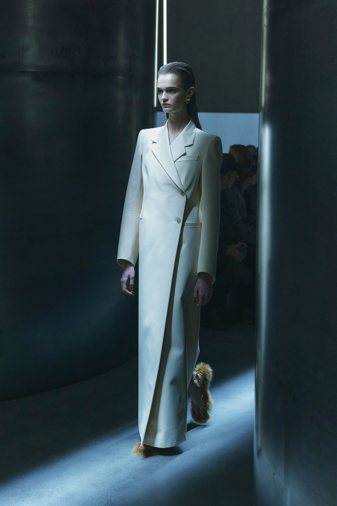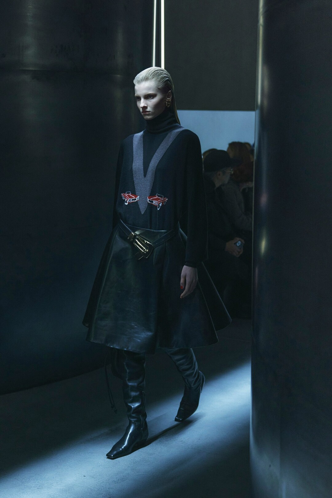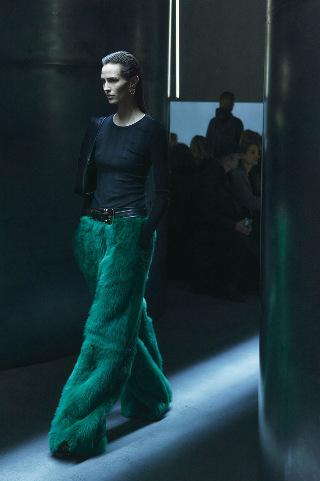 Осенне-зимняя коллекция Khaite, выросшего в хедлайнера нью-йоркской недели моды, для властных и теплолюбивых. Доминировать предлагается в черных кожаных пиджаках и кожаных юбках, а греться – в кашемировом комбинезоне, а также в меховых пальто, топах, мюлях и даже брюках. По замыслу автора, коллекция транслирует контролируемую, а не декларативную сексуальность.