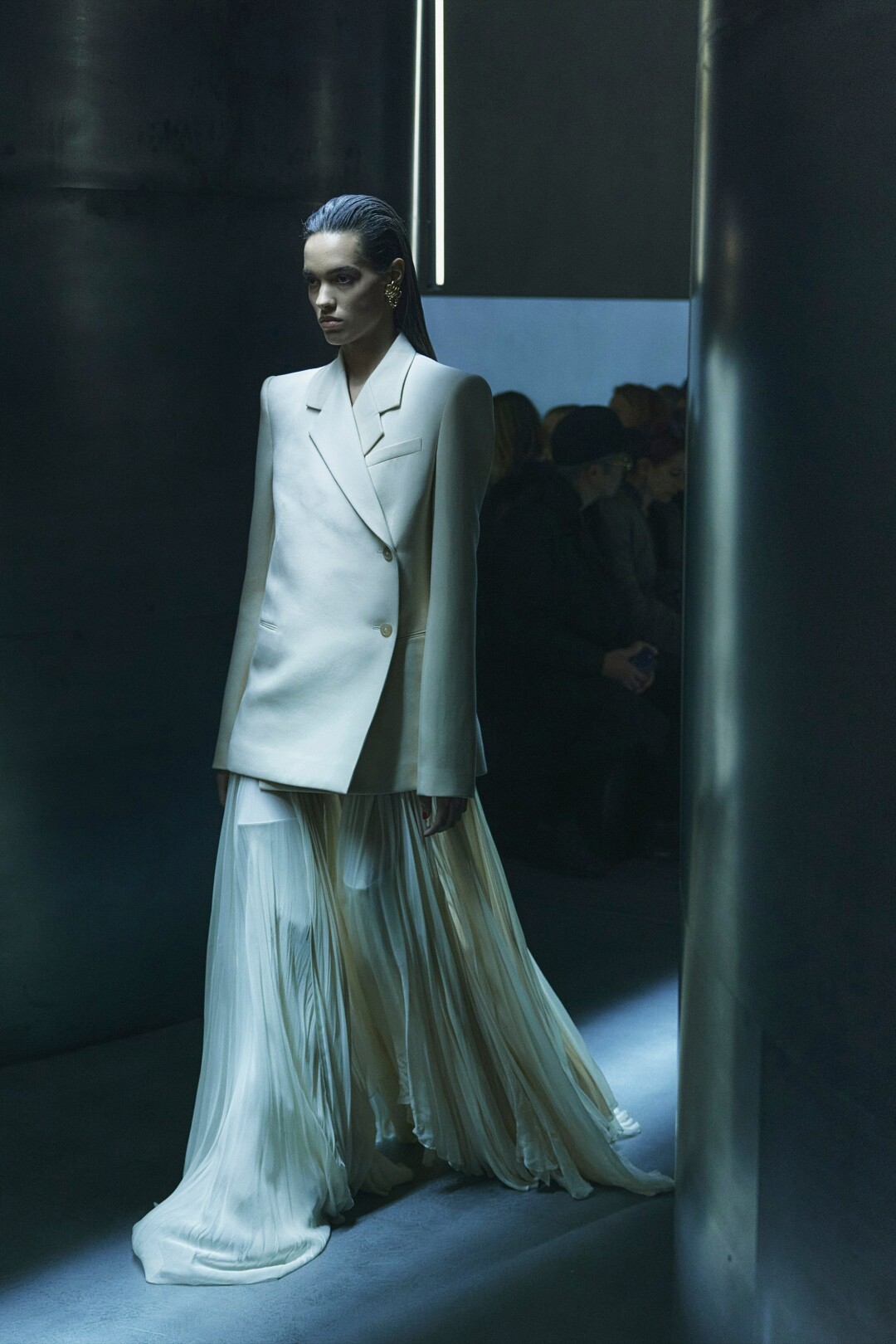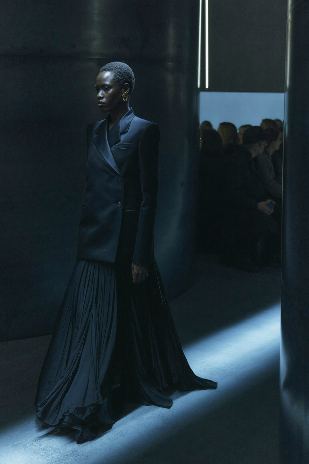 Кэтрин Хольштейн (глубоко беременная, как и все в этом сезоне) показала самую строгую коллекцию (и лучшие пальто!) за всю историю Khaite. Авторитарная линия плеч, обилие кожи, минималистичный тэйлоринг и никаких милых декоративно-прикладных глупостей (кроме двух красных кашемировых Корветов!).