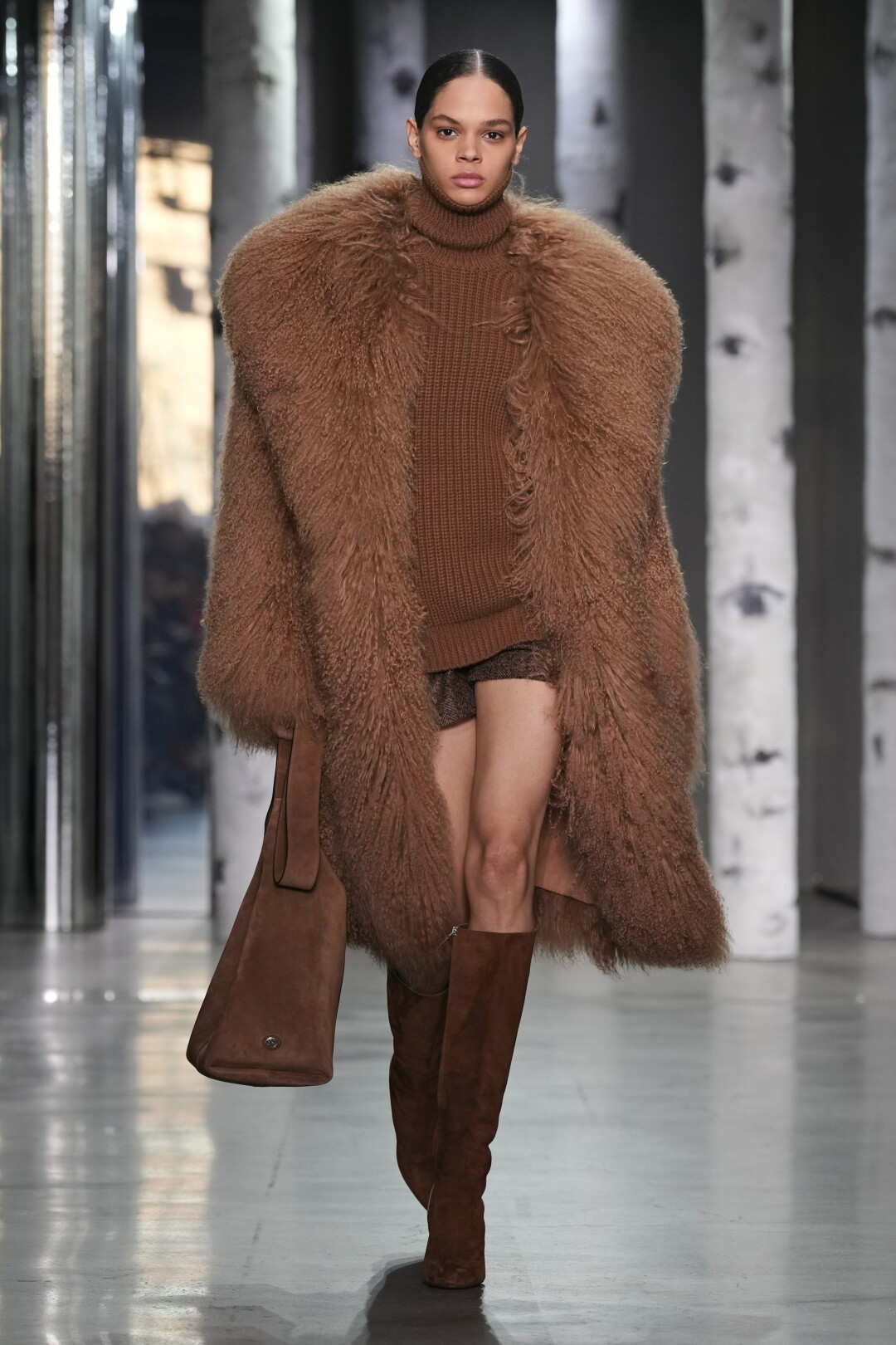 Майкл Корс не любитель выходок и экспериментов на подиуме, поэтому основу коллекции составили все те же узнаваемые, но горячо любимые клиентами марки вещи: двусторонняя верхняя одежда из кашемира, элегантные двубортные пиджаки и мягкие вязаные платья с струящимися рукавами (Лина Хорн считала их своим секретным оружием!).