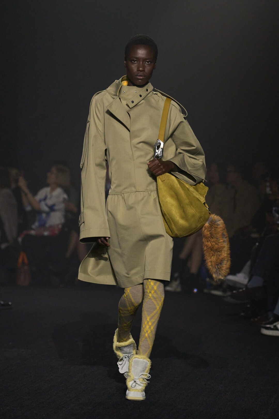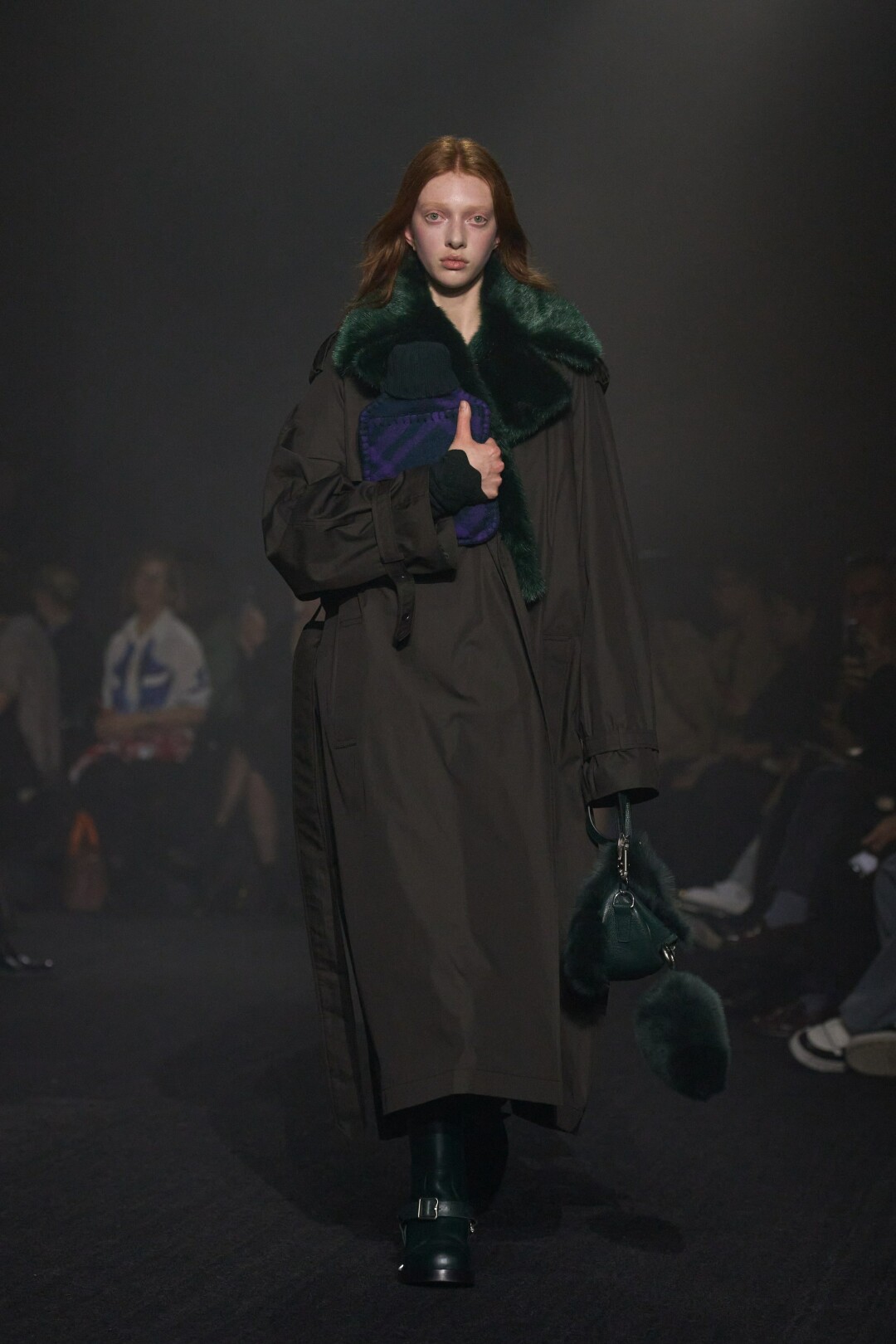 Дэниэл Ли играет с идеей функциональности, уделяя гораздо больше внимания простой в использовании утилитарной одежде, чем это делал Риккардо Тиши в последние несколько лет, но мы знаем и любим Burberry за выходы королевских особ, и едва ли представляем Кейт Миддлтон в одной из этих вещей. Если куда-то и отправимся в армейских пальто, клетчатых пледах и с мохнатыми грелками, то только на йоркширские болота (уточки к уточкам!), но никак на званый ужин в Букингемский дворец.