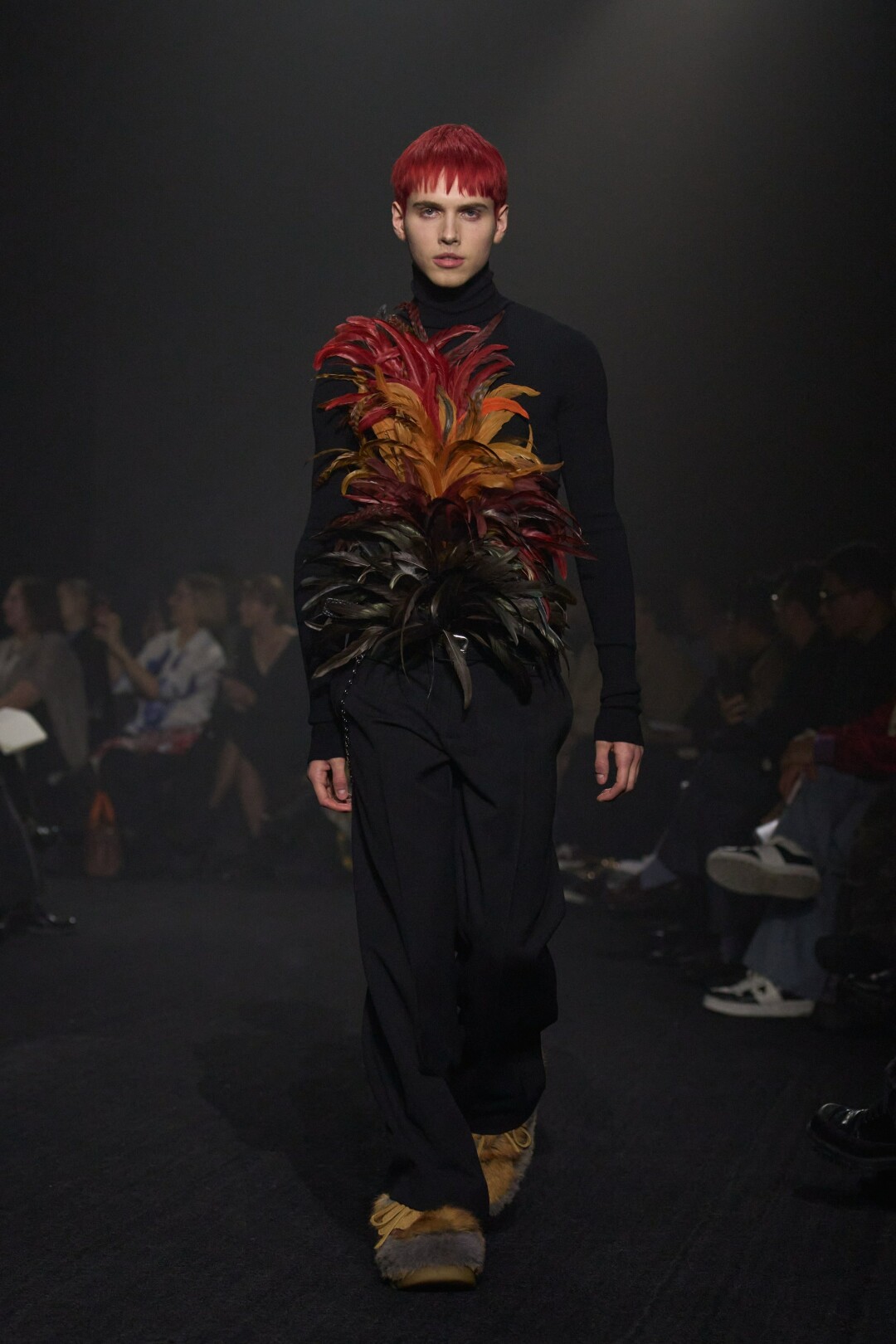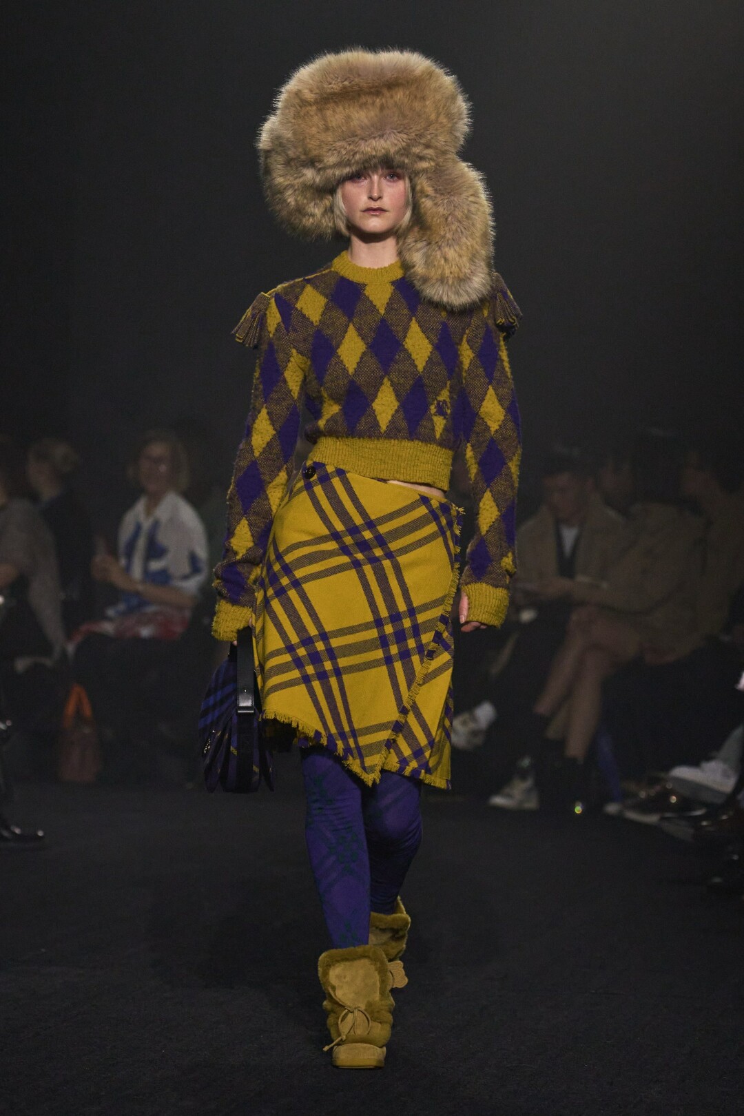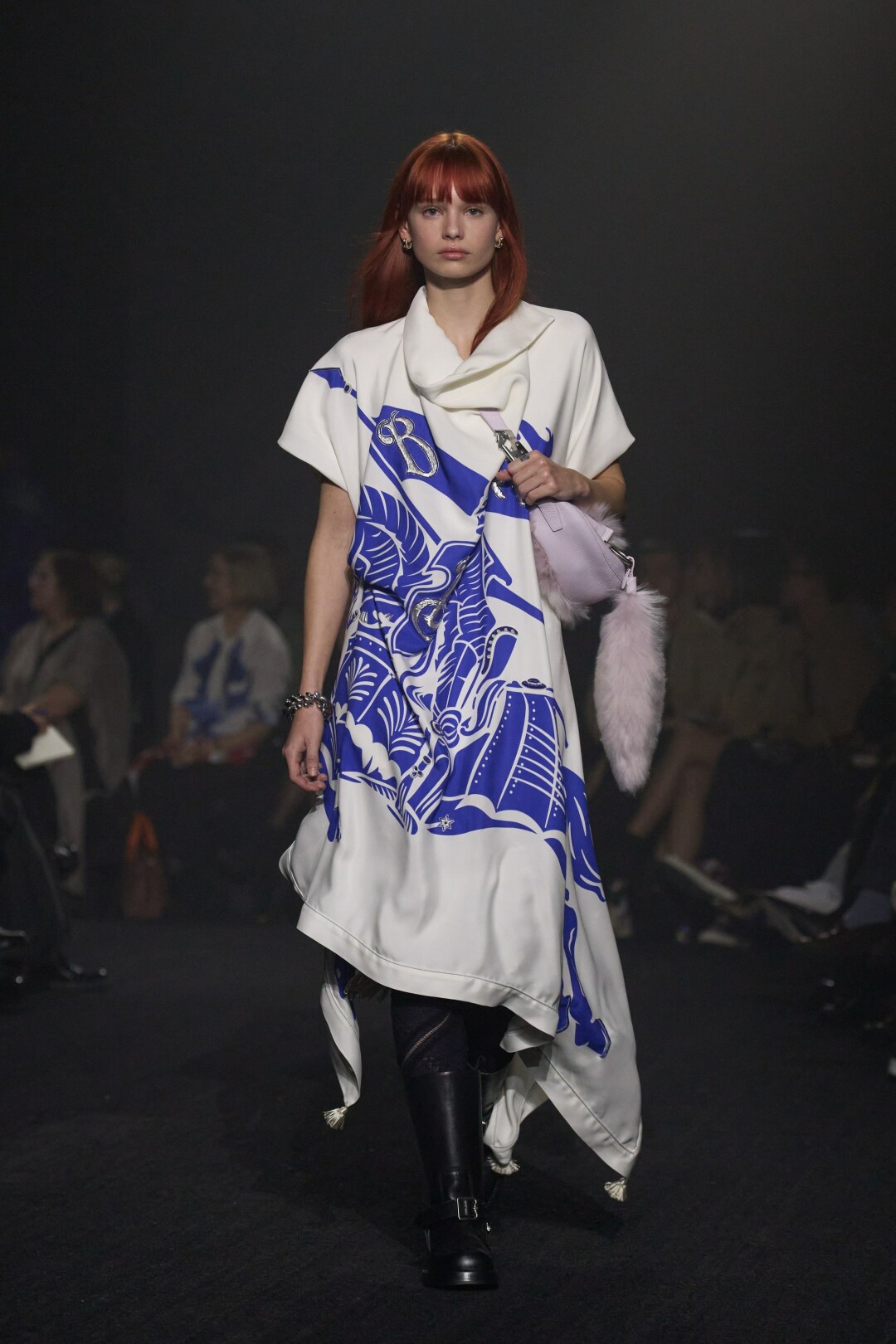 Меха, сложные оттенки и гранж: казалось бы, что может пойти не так? Но пресловутое ДНК было потеряно (кажется, безвозвратно и кажется, давно), а лого-всадника Burberry размазало по неловко скроенному платью. И даже слоган «Ветер перемен» не принес ожидаемого эффекта — разве что легкий вайб разочарования и знакомой нам северной грусти. Именитые редакторы утверждают, что Ли «знает все о том, как быть британцем», и с этим не поспорить, когда видишь тренчи и клетку, но также понятно, что он едва ли чувствует, «как быть Burberry» в 2023-м.
