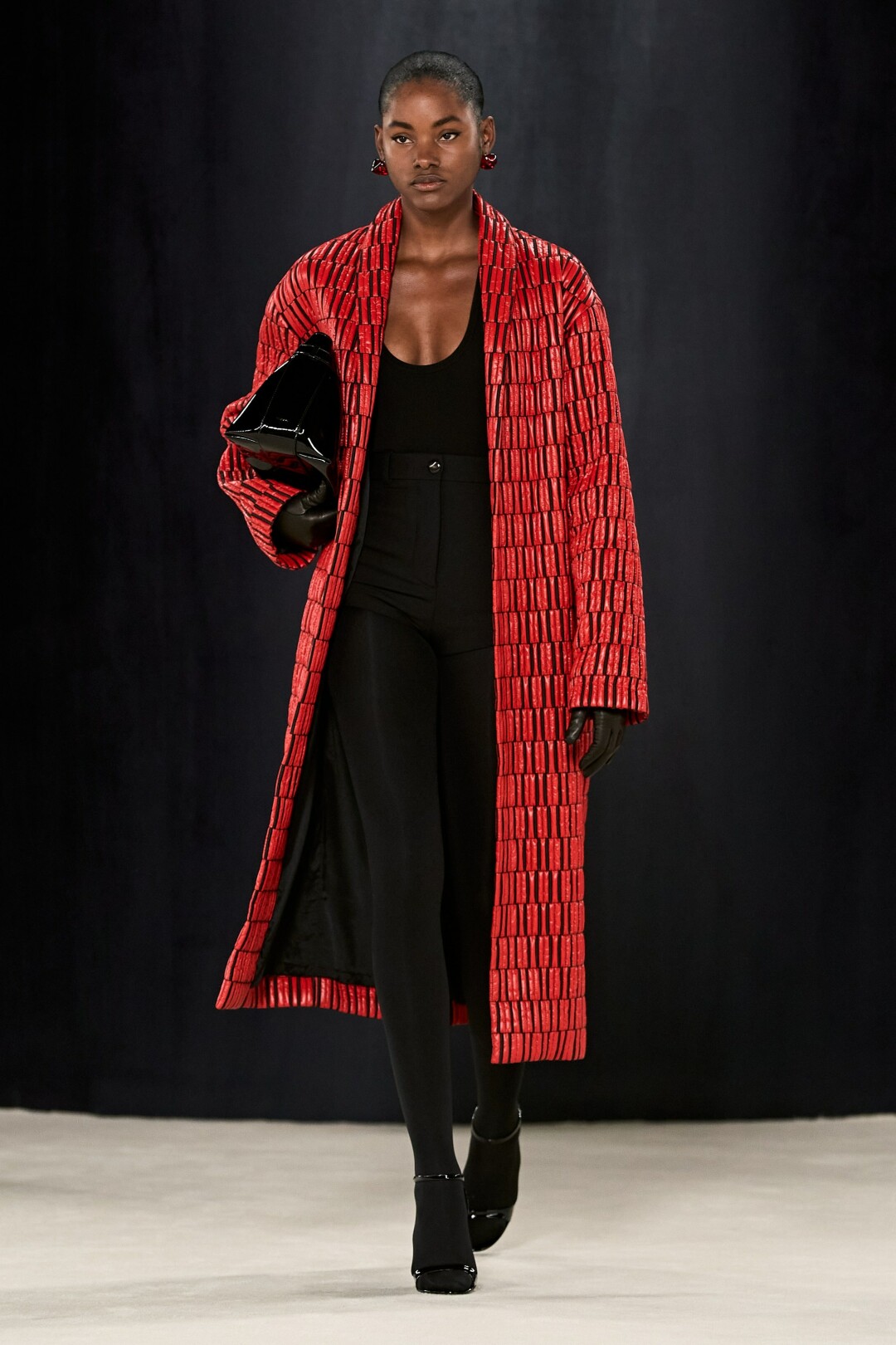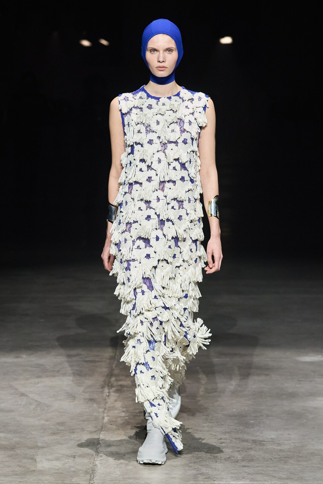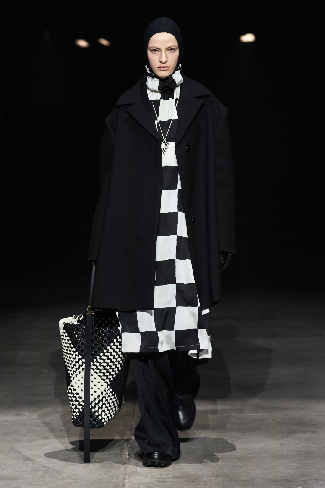 Миучча Прада и Раф Симонс продолжают закладывать за воротник: этот шейный аксессуар перекочевал из мужской коллекции. Вслед за ним убежало одеяло, улетела простыня: получились объемистые стеганые мини (практикуем бодипозитив) и белые халаты со шлейфами (играем в медсестру). Показ открылся ворохом кипенно-белых юбок, декорированных цветами оригами: их дофаминовую, почти свадебную нарядность на всякий случай приглушили базовыми серыми свитерами. Также в повестке: милитари-шик (который мы заслужили) и лучший алый лаковый костюм сезона.