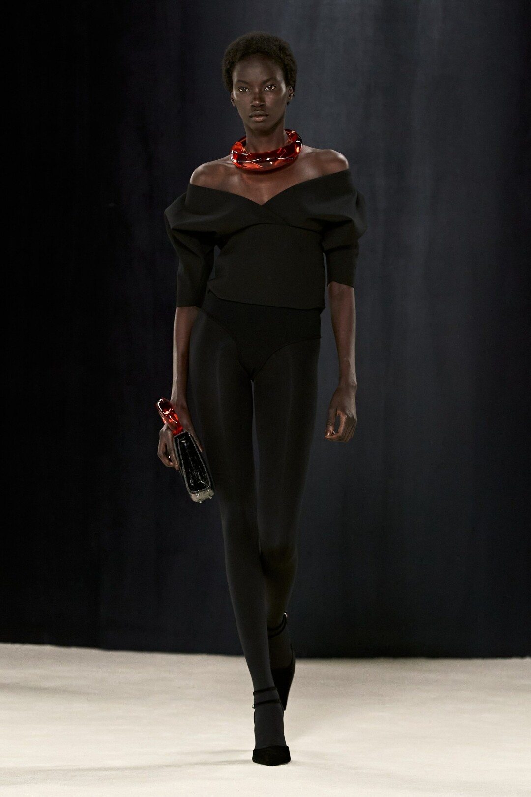 Максимиллиан Дэвис припомнил былые голливудские успехи Ferragamo: когда-то здесь заказывали туфельки Одри Хепберн, Грета Гарбо и Мэрилин Монро. Фабрика грез в прочтении Дэвиса – это лаке (платья со скрипом), текучий металл (драпированная сталь) и красное пальто (из кожаных пикселей). Отдельная благодарность за тренчи всех оттенков кроме бежевого, жизнеутверждающие пузатые колье и щедрое предложение носить сумки под мышкой, а светлые туфли с черными колготками (и белыми шароварами!).
