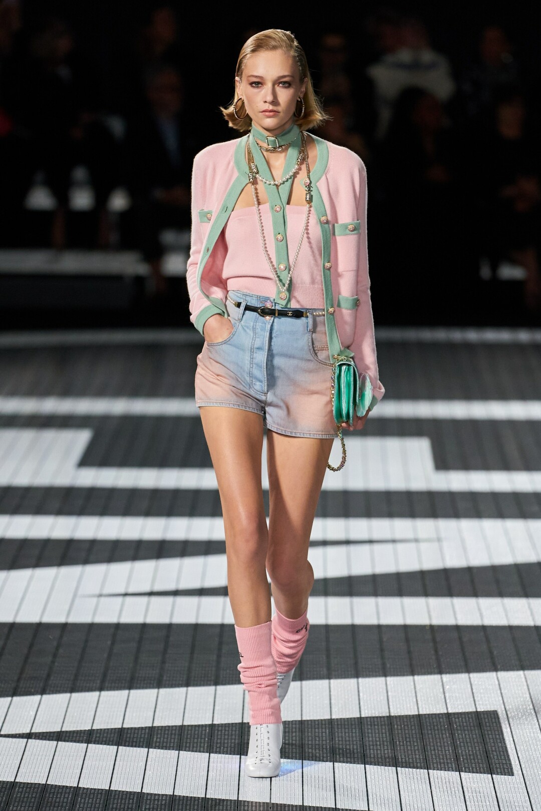 Наконец-то мы увидели в Chanel проблеск надежды: барбикор, замешанный с тихой роскошью, ультрамини и дофаминовые гетры в стразах для ваших лучших танцев. И даже твид в этот раз не выглядит тоскливым (особенно, когда это твидовый костюм-тройка с корсетом).