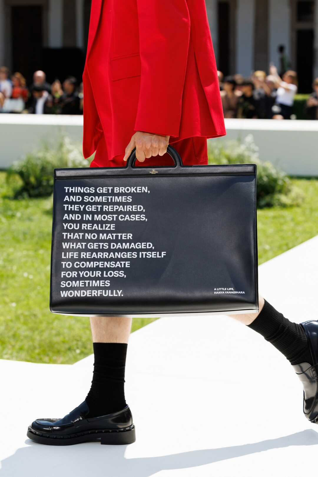 Не прошло и восьми лет с выхода романа "Маленькая жизнь" Ханьи Янагихары, как его прочел худрук Valentino Пьерпаоло Пиччоли, разослал слезоточивую литконьюнктуру (в розовой обложке) в качестве приглашений на показ, да еще и украсил цитатами костюмы, джинсы и даже сумки из новой коллекции The Narratives. Но было и хорошее: например, цветы. Особенно те, что прорастали кантиками по планкам сорочек и распускались у воротников и манжет.