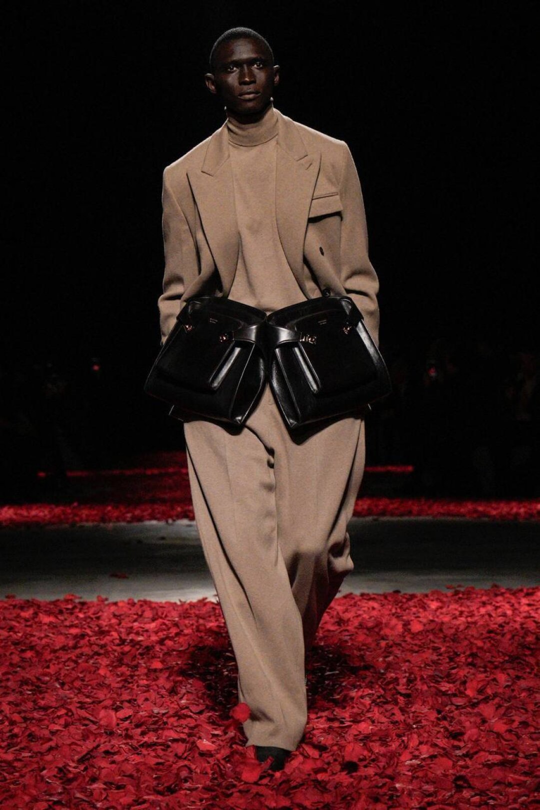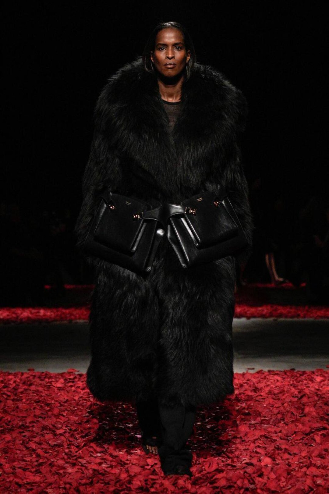 Вместо традиционных шуб худрук Ferragamo сделал ставку на оверсайз-жакеты с ворсистыми рукавами, меховые пальто со вставками из черной шерсти и пушистые баски (носим поверх трикотажных юбок и полупрозрачных платьев). Однако без классической добротной все-таки не обошлось: Максимилиан Дэвис замиксовал объемную макси-шубу из черного меха с поясными гранд-сумками — главный стейтмент-аксессуар показа, который поженили с монохромными сетами из трикотажных боди и леггинсов, плечистыми пальто, песочными двойками и кожаными тотал луками.