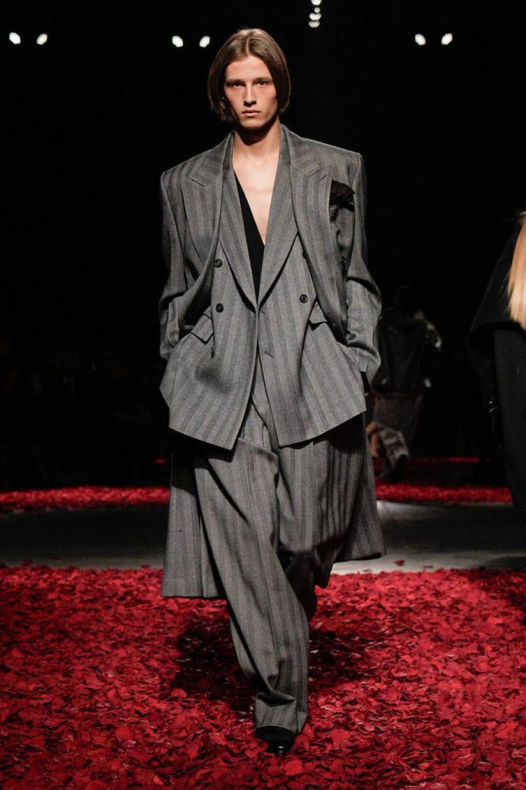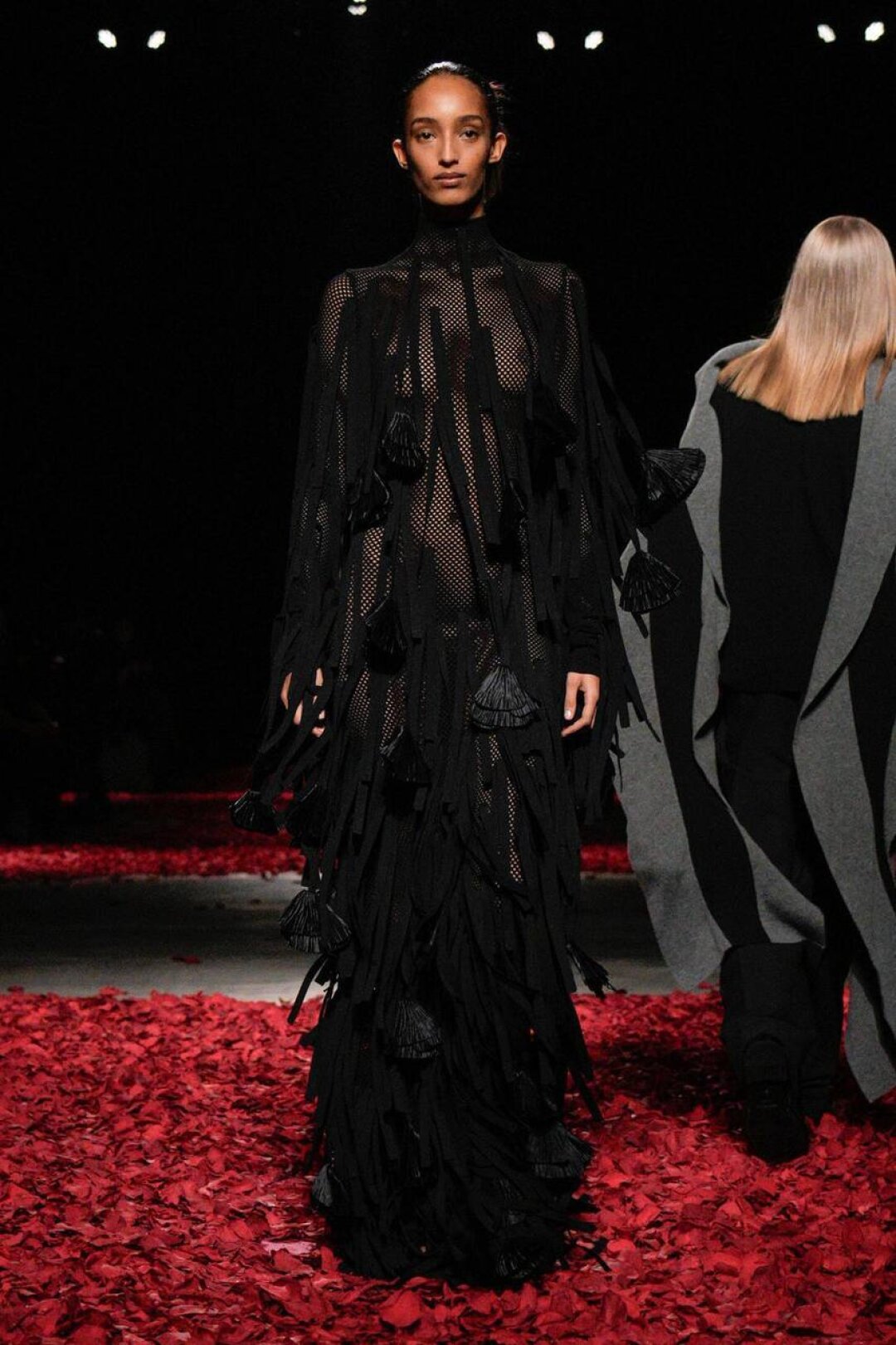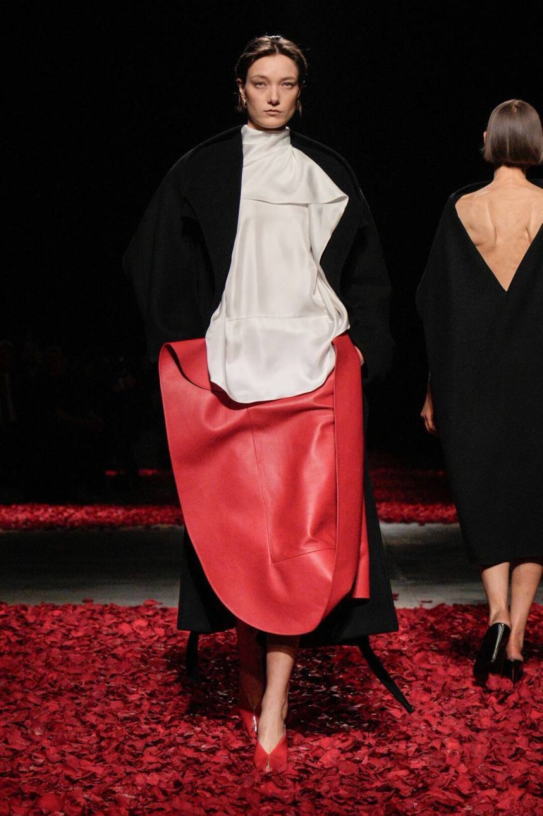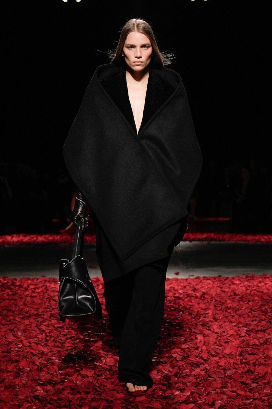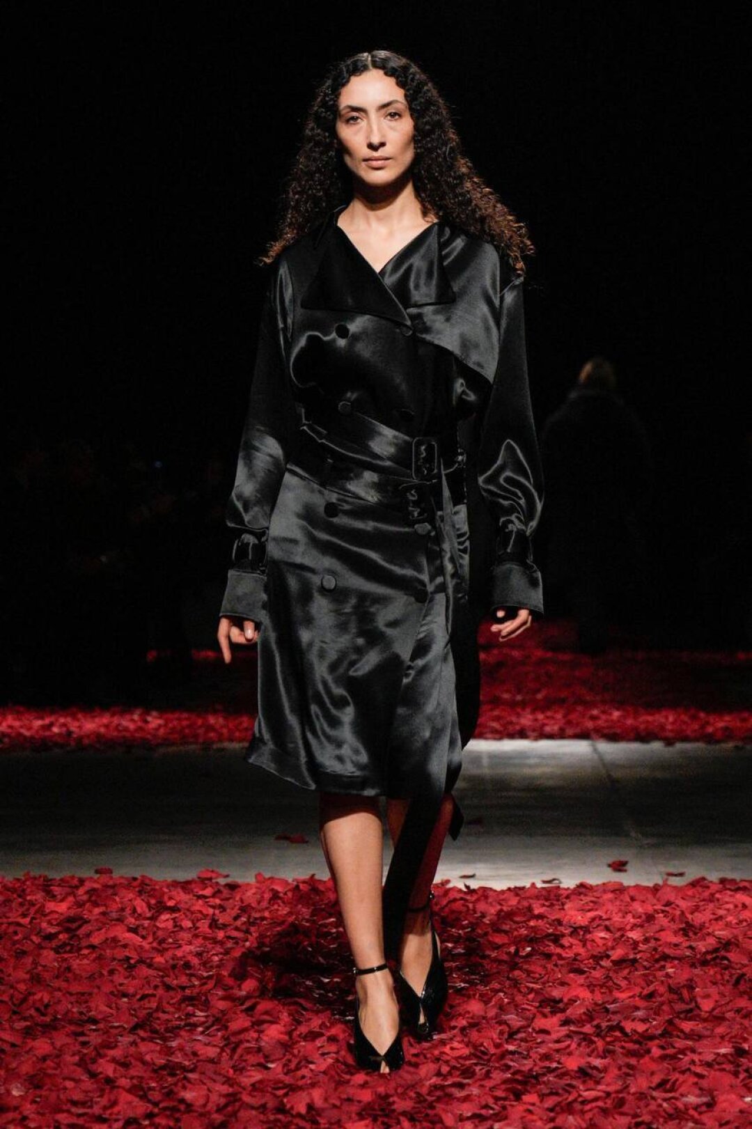 Меховые баски, атласные тренчи, прозрачный трикотаж и монохром — краткий пересказ осенне-зимней коллекции Максимилиана Дэвиса. А еще на подиуме, усыпанном тысячами лепестков роз, увидели трендовую клетку (вам аргайл или гленчек?), пернатый total look (красный-кардинал-кор!) и очень много кожи (от плащей до юбок и поясных мега-сумок).
