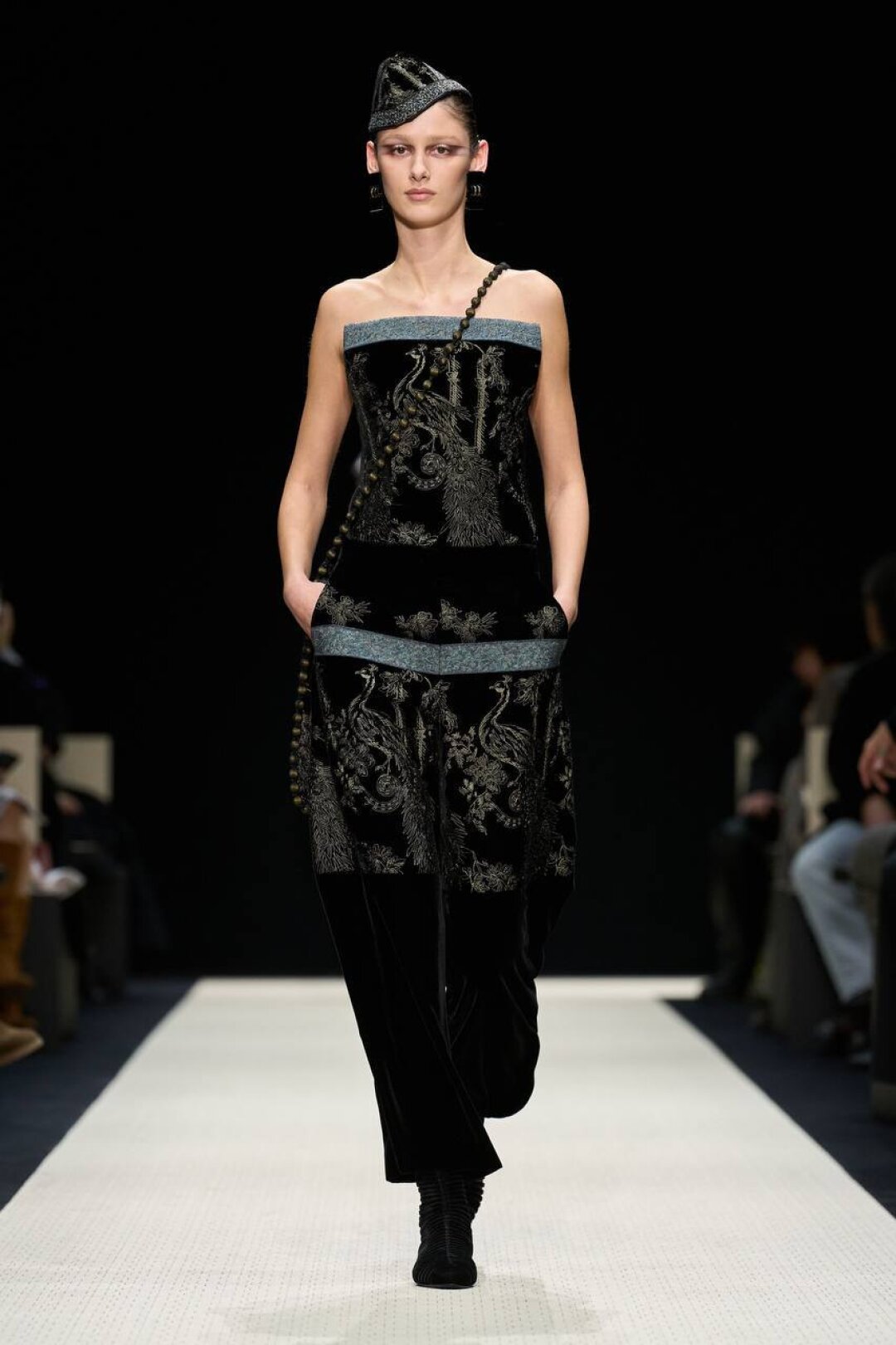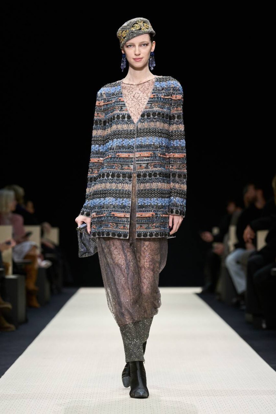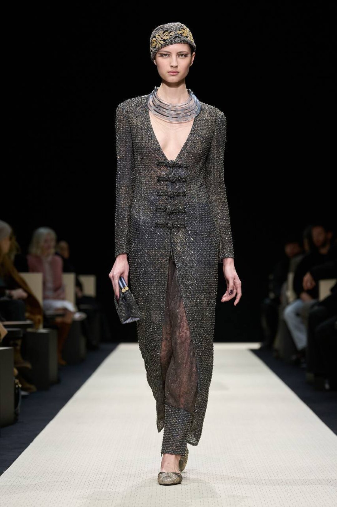 Не игнорируем головные уборы: в Giorgio Armani сочинили драгоценные тюбетейки, велюровые пилотки и декадентские чепчики