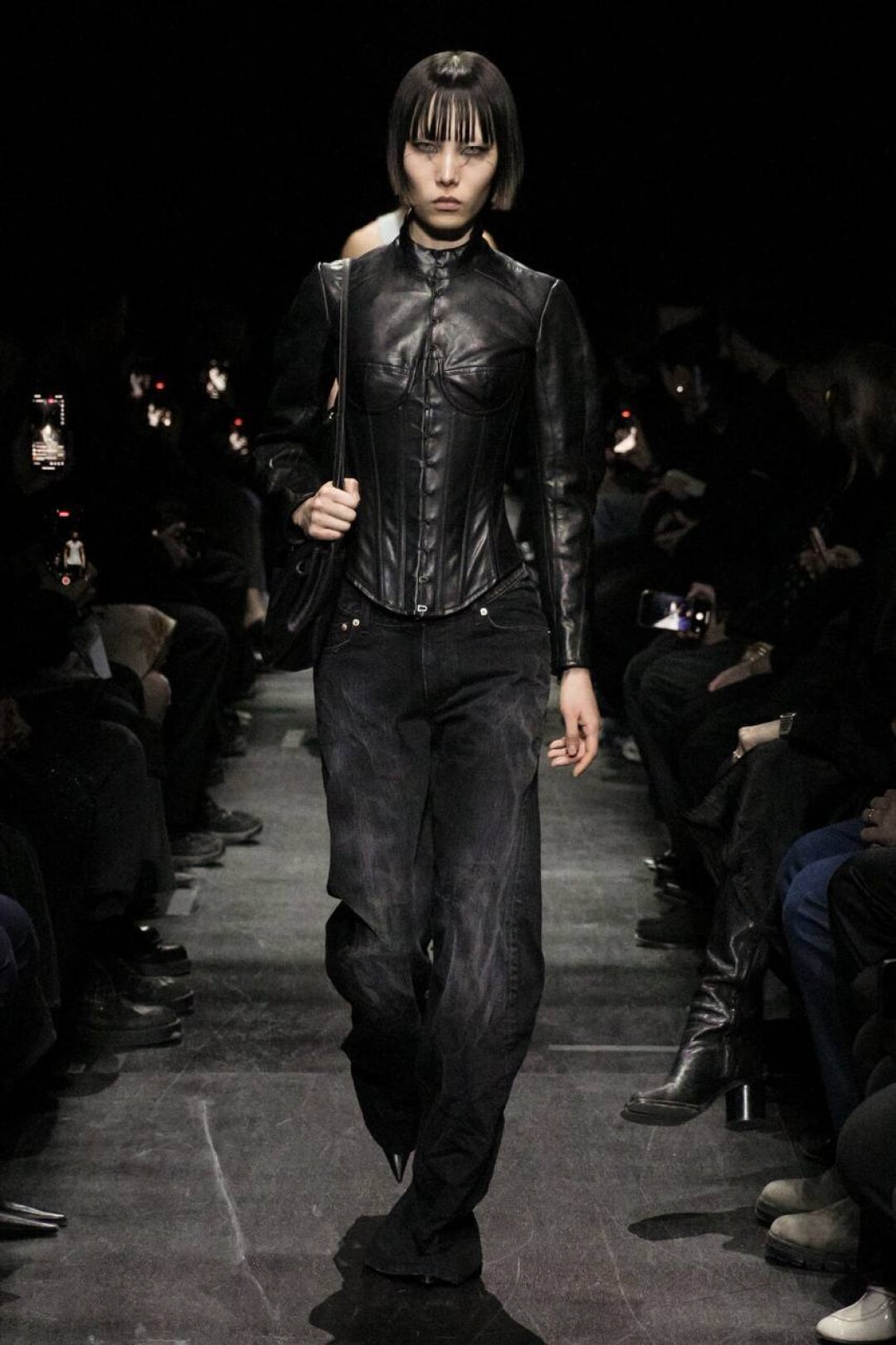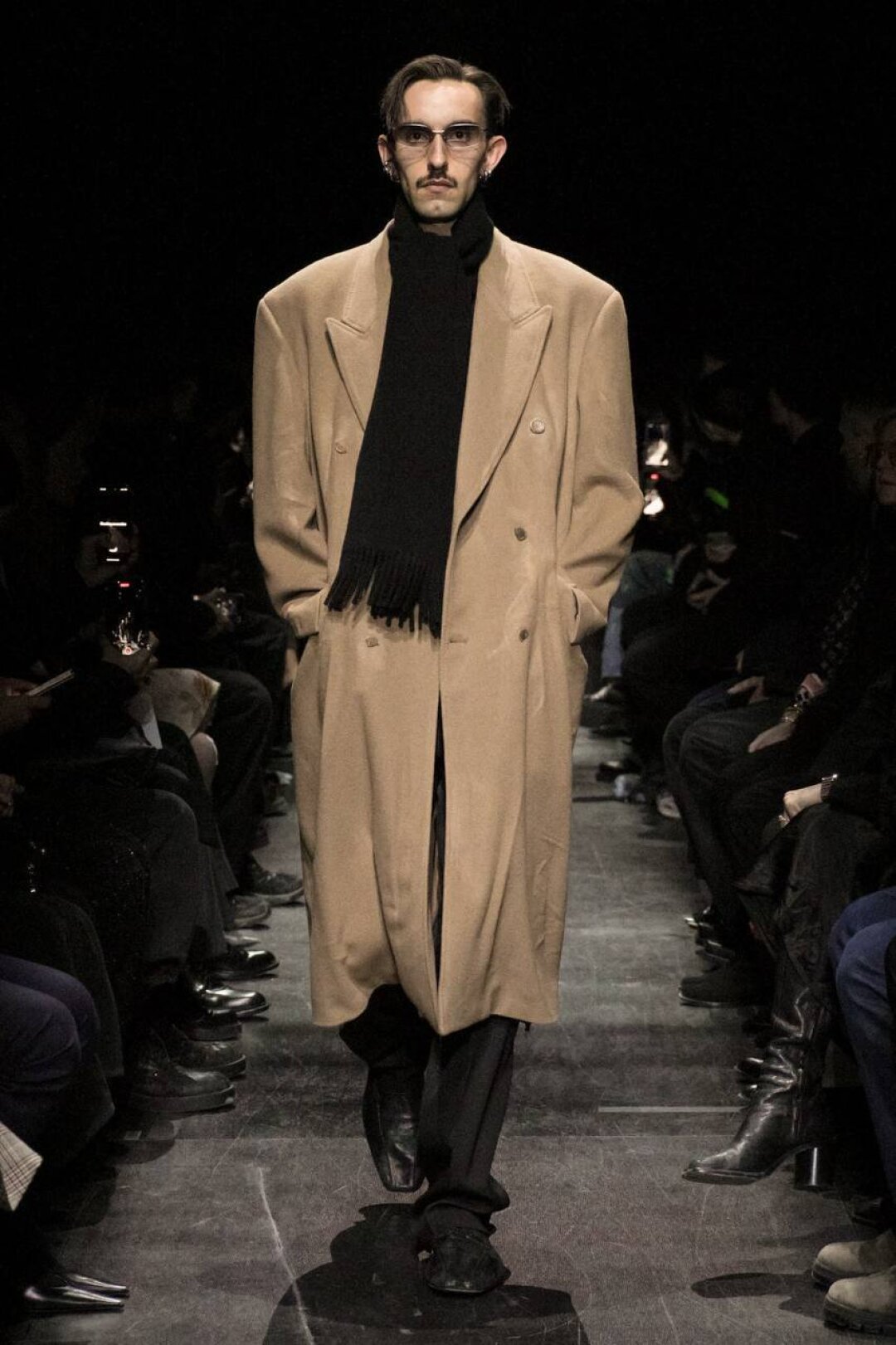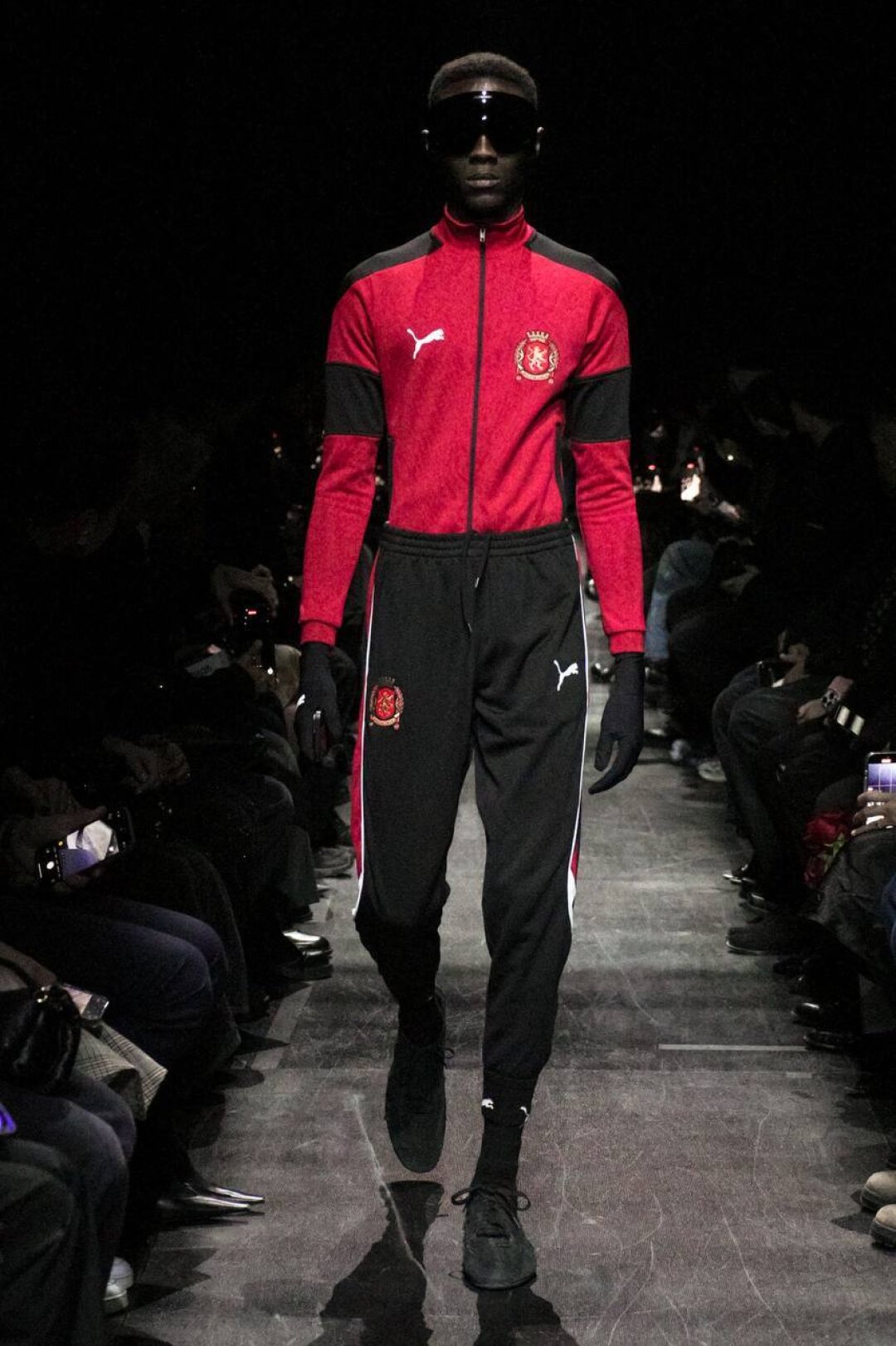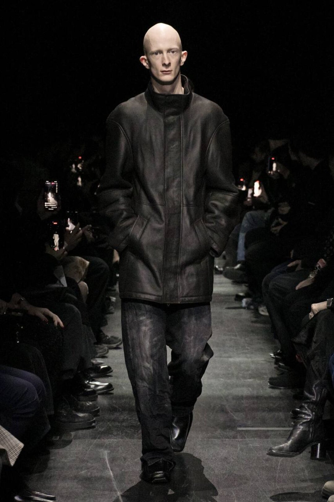 Офискор в исполнении Демны: строгие приталенные двойки на голое тело, помятые темно-синие и порванные полосатые (лайфхак: оставьте костюм и кошку в закрытой комнате на пару часов — ваш костюм Balenciaga готов!). Худрук Balenciaga продолжает костюмную тему видавшими виды сетами из денима (миксуем с лакированными лодочками!) и спортивными айтемами из коллаборации с Puma: Демна вспоминает постсоветское прошлое (читай: фэшн-принципы гопников!) и заправляет олимпийки в треники, сочетает их с высокими носками и узкими дутыми жилетами.
