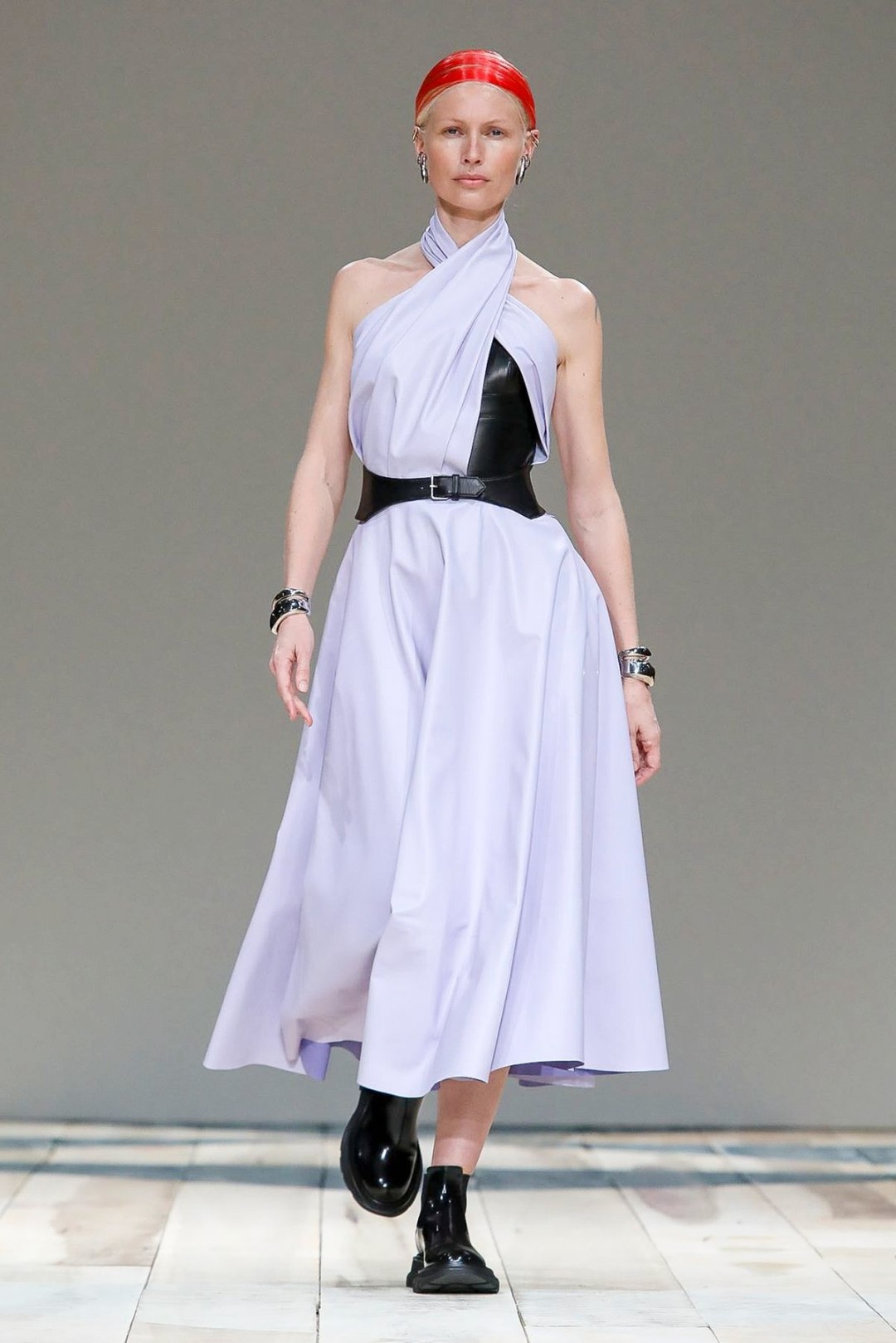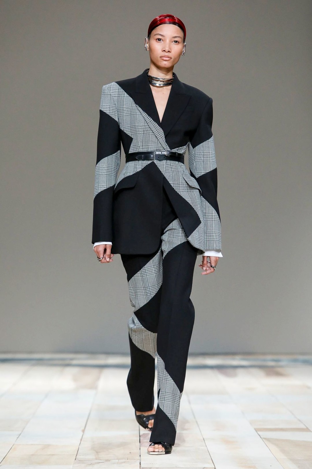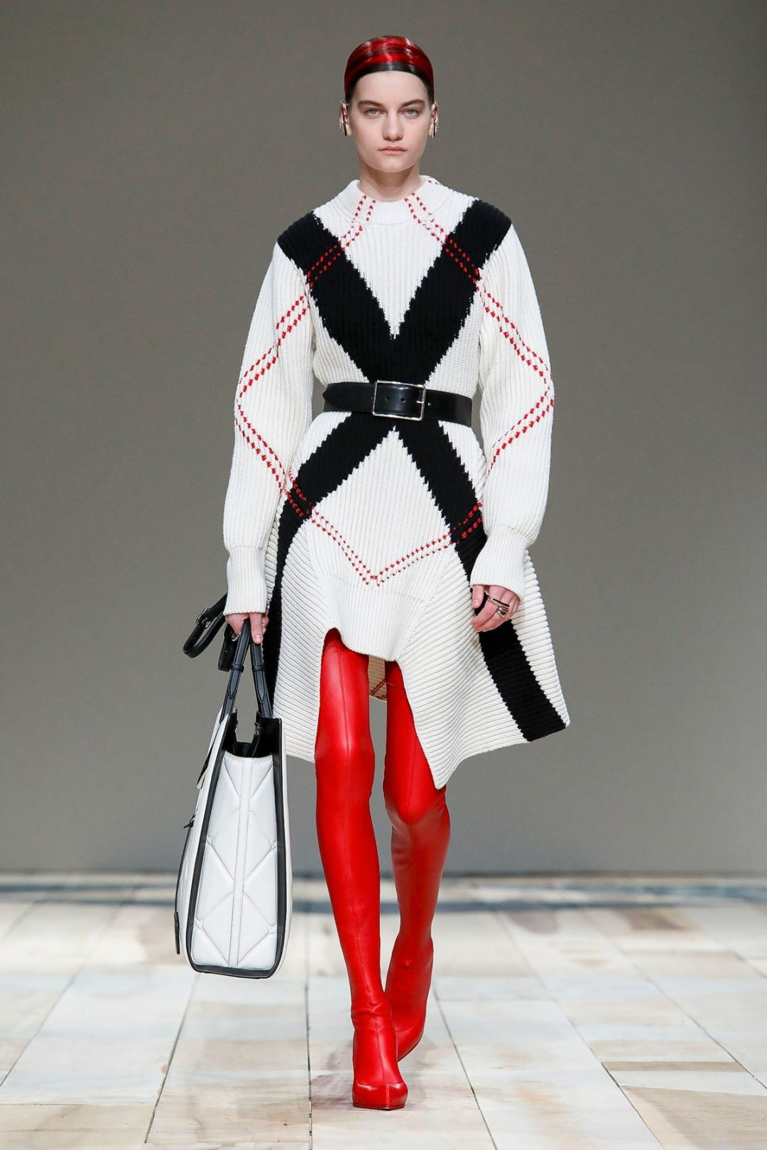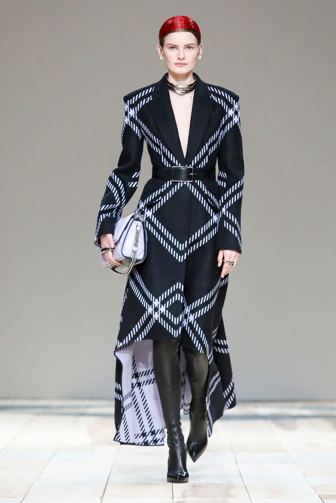Новая коллекция Alexander McQueen: костюмы в клетку, платья с портупеями и высокие сапоги