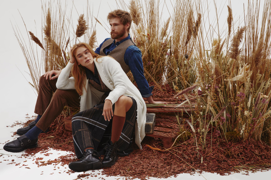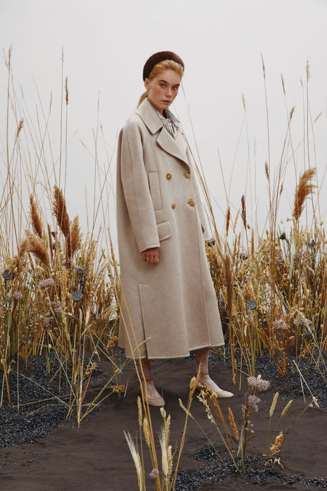 Осенне-зимняя коллекция бренда выдержана в оттенках бежевого, охры, красного дерева и темного шоколада с контрастным добавлением молочного и кипенно-белого. В нее вошли объемные кашемировые пальто с деталями из тонкого стриженого меха, велюровые брюки, шерстяные пиджаки, свободные костюмы, вязаные кардиганы, шейные платки, гольфы, кожаные поясные сумки, сумки-мессенджеры с меховой отделкой и широкополые шляпы. Монохромные образы разбавлены принтом в полоску, клеткой гленчек, шотландкой, пепита, а также паттерном пейсли.