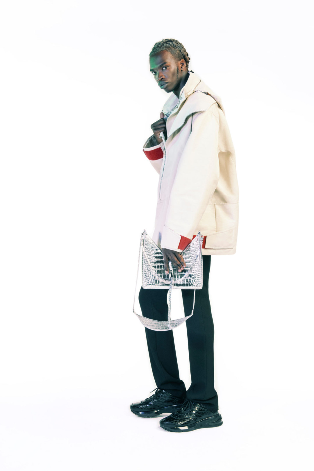 Дополняли образы аксессуары: головные уборы с рогами, огромные сумки. Также Givenchy показали босоножки с двумя перемычками между пальцами. Цветовая палитра состоит из базовых белого и черного оттенков, красного, фиолетового, бежевого и шоколадного. Презентация новой коллекции прошла в формате stories в инстаграм-аккаунте бренда.