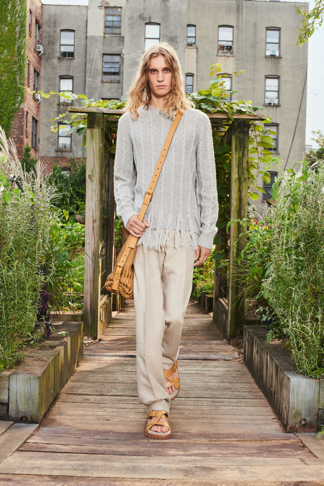 Главным цветом коллекции стал бежевый, его дополнили базовые белый, серый и черный, а также голубой и зеленый оттенки. Майкл Корс создал вневременные вещи, актуальность которых не потеряется со временем. Напомним, что дизайнер поменял свой подход к работе — теперь он выпускает только две коллекции в год, не подстраиваясь под расписание Недель моды.