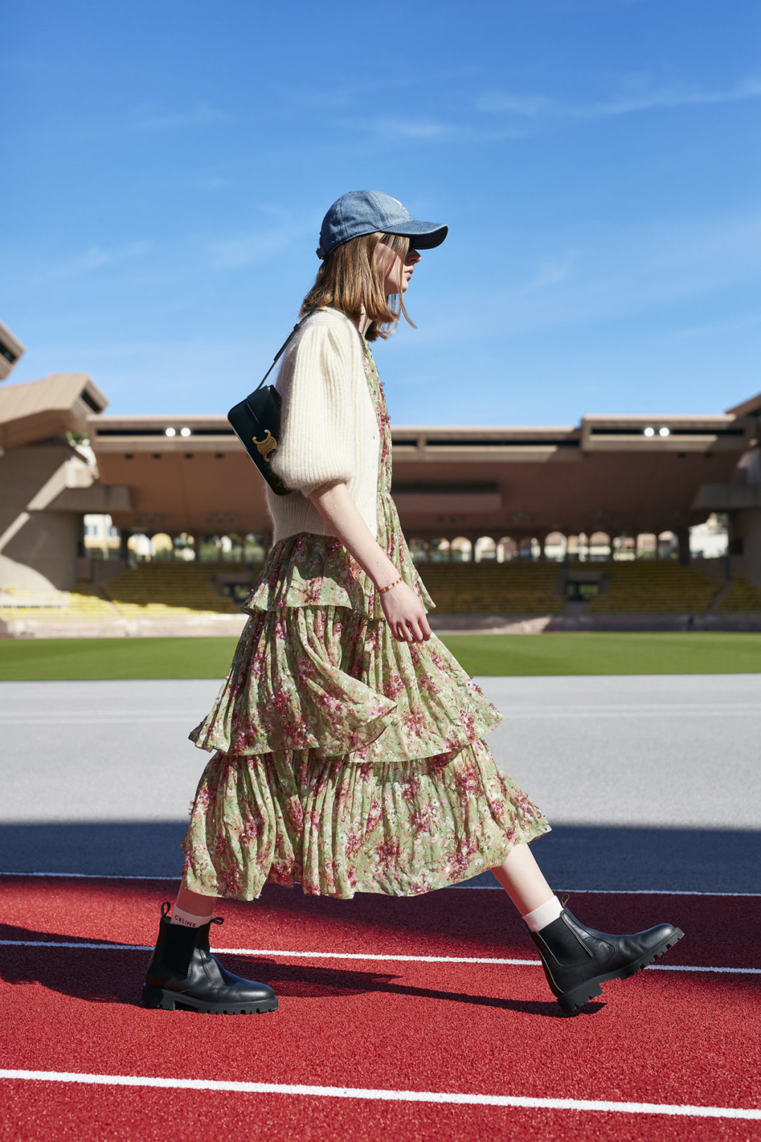 Шоу бренда прошло в Монако — на стадионе Луи II, без зрителей, как и многие показы Недель моды. Креативный директор Celine Эди Слиман представил коллекцию сезона весна-лето 2021. В нее вошли джинсовые и кожаные куртки, велосипедки, треники, пиджаки и жакеты, костюмы со свободными брюками, плиссированные юбки, платья с воланами, шорты в разных вариациях — от джинсовых до выполненных в стиле формы баскетболистов.