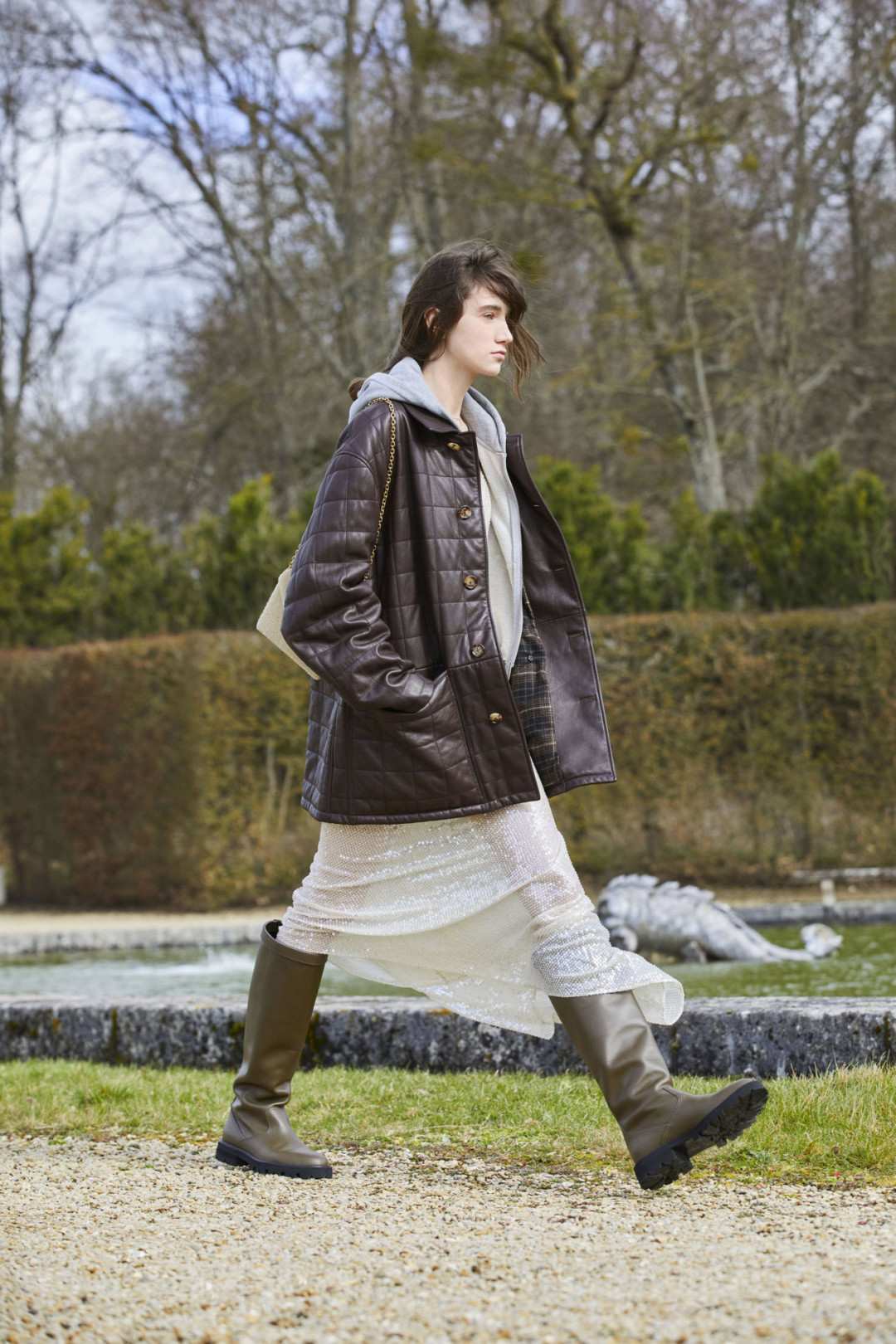 Креативный директор Celine Эди Слиман презентовать новую женскую коллекцию модного дома. Показ прошел в окрестностях Парижа, декорациями для шоу стали сады Андре Ленотра и территория замка Во-ле-Виконт. Модели ходили по живописной локации под саундтрек Un Day Dream, который был написан специально для события. Завершился показ салютом.