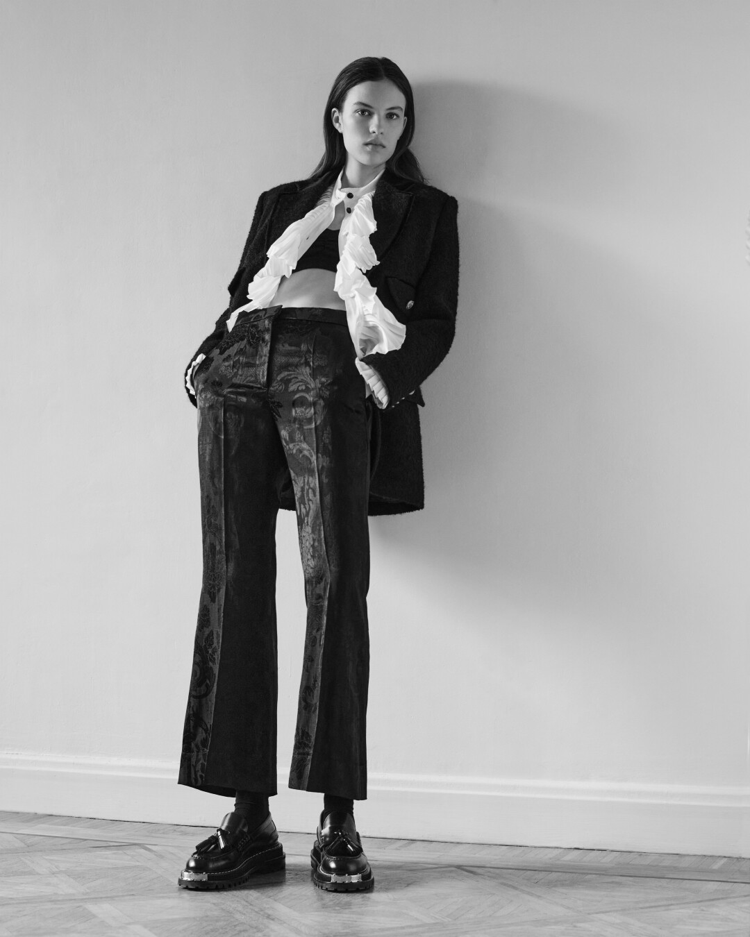 Французский бренд Sandro в осенне-зимней коллекции сделал ставку на аксессуары, детали и трикотаж. Среди первых — меховые панамы, плюшевые, твидовые, вельветовые сумки, шелковые платки, цветные шарфы. Классных деталей тоже в избытке — это и ажурные воротнички, воланы на блузках с объемными рукавами-фонариками, и золотые носы у ботинок-челси и лоферов, и фурнитура, значки на сумках, жакетах и пальто. Носим все это с бархатными комбинезонами, шортами, платьями и, конечно, вязаными жилетами и кардиганами. Трикотажа в этом сезоне не может быть много!
