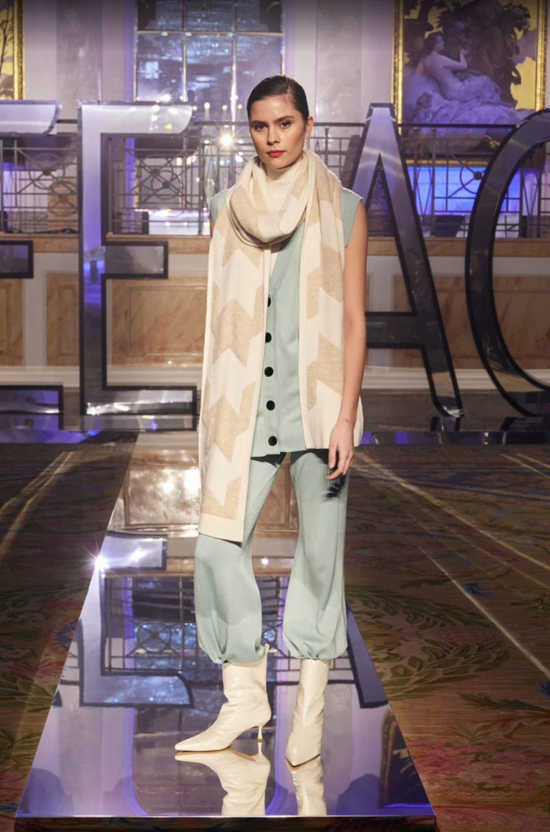 Дополняет коллекцию капсула Voyage, в которой помимо базовых свитеров есть трансформирующиеся изделия из бленда пряж, создающие на теле обволакивающий эффект.