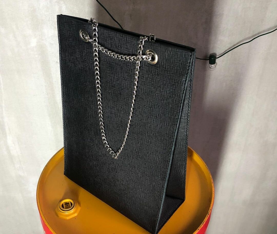 Да, это кожаный пакет! Придумал его пять лет назад дизайнер Константин Стронг. И этот аксессуар способен на большее, чем стать пакетом с пакетами. В него поместятся ноутбук, документы, одежда, личные вещи и еще останется место. Что касается дизайна — чистый постмодерн. Константин работает с натуральной кожей и только вручную. Кроме пакетов он создает шоперы, кошельки, поясные сумки, картхолдеры и другие кожаные аксессуары.