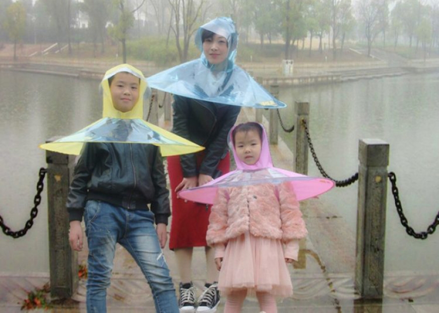Китайцы придумали зонт-дождевик — и он выглядит очень смешно