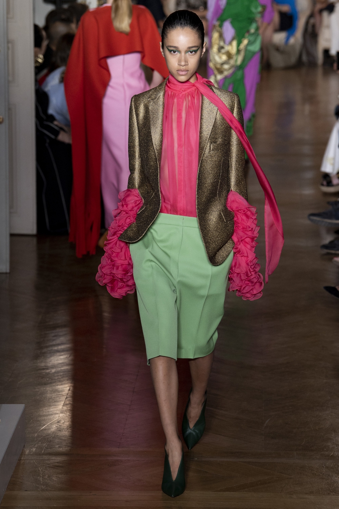«В коллекциях ready-to-wear твое видение красоты адресовано ко времени, в которое ты живешь, — рассказывает автор коллекции, закрывшей Неделю Высокой моды, Пьерпаоло Пиччоли. — Кутюр же подразумевает более глубокую и интимную перспективу». В доказательство своих слов дизайнер Valentino показал целый ворох референсов к истории и искусству: греческой мифологии, работам художников 17 и 18 веков, фильмам Пазолини (тоже Пьера Паоло), фотографиям Деборы Турбевилль и даже персонажу Дэвида Боуи Зигги Стардасту.