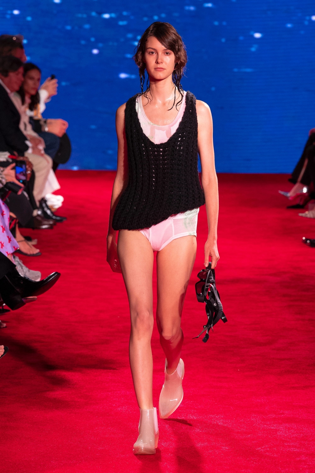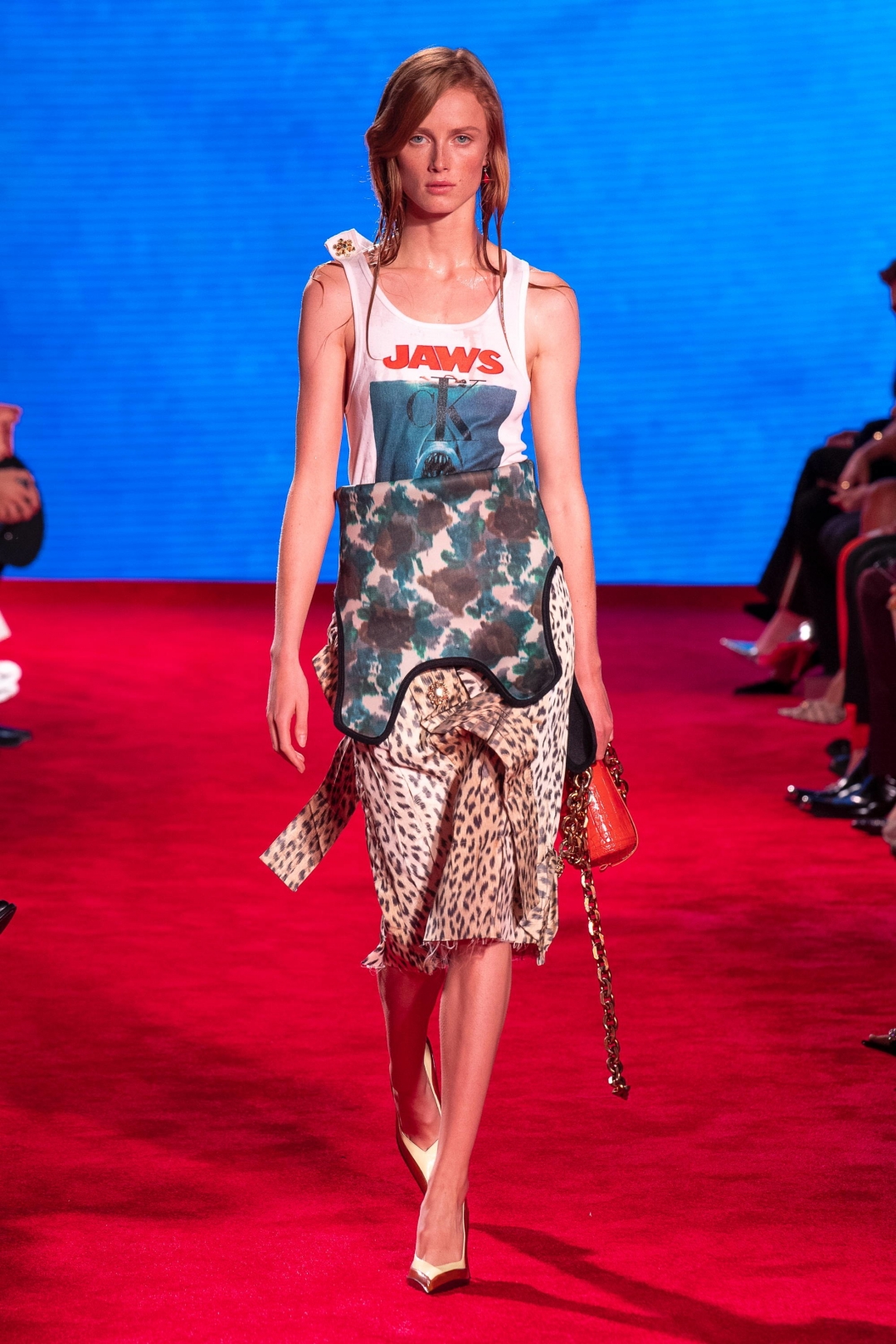 Американская история ужасов, рассказанная Рафом Симонсом, продолжается: после прошлогодней коллекции с платьями, будто забрызганными кровью, и плащами, больше напоминающими черные пакеты, дизайнер Calvin Klein обратился к одному из лучших хорроров 70-х годов — фильму «Челюсти». Отсылки были и прямые, и косвенные: футболки с постером спилберговской ленты чередовались с гидро-костюмами и юбками с необработанными (откусанными!) краями. А сами модели (в том числе Даутцен Крус, Стелла Теннант, Кайя Гербер и Алина Болотина из Петербурга) дефилировали на фоне волнующегося моря под музыку, которая в «Челюстях» намекала на скорый «страшный момент».
