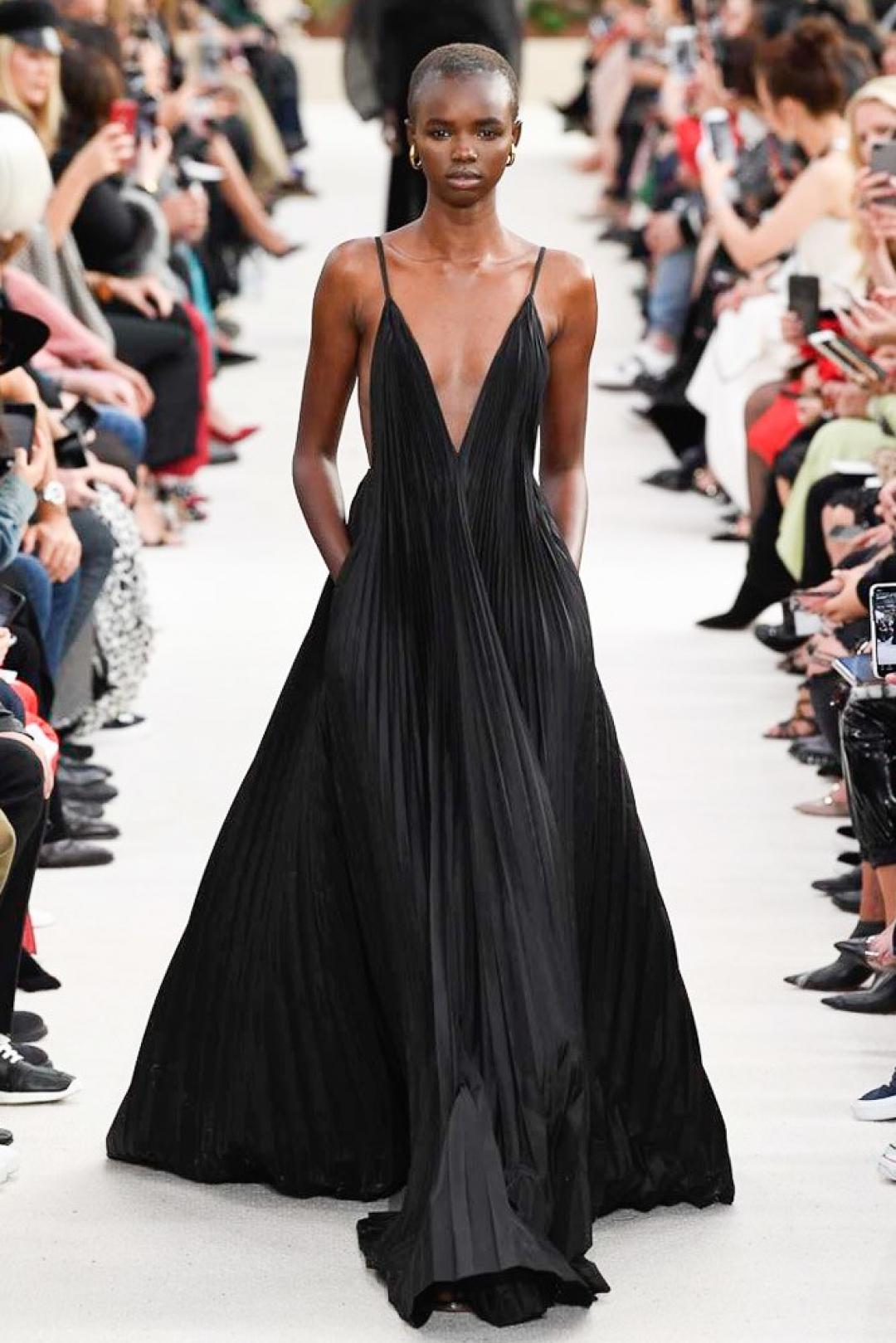 Новая коллекция Пьерпаоло Пиччоли для Valentino заставляет ждать следующего лета не столько из-за тепла, сколько из-за модных новинок: черных платьев с бахромой, надетых на голое тело, кружевных костюмов, стилизованных гигантскими серьгами-кольцами, и оверсайзовых блуз, дополненных соломенной шляпой еще более экстравагантной, чем у Jacquemus.