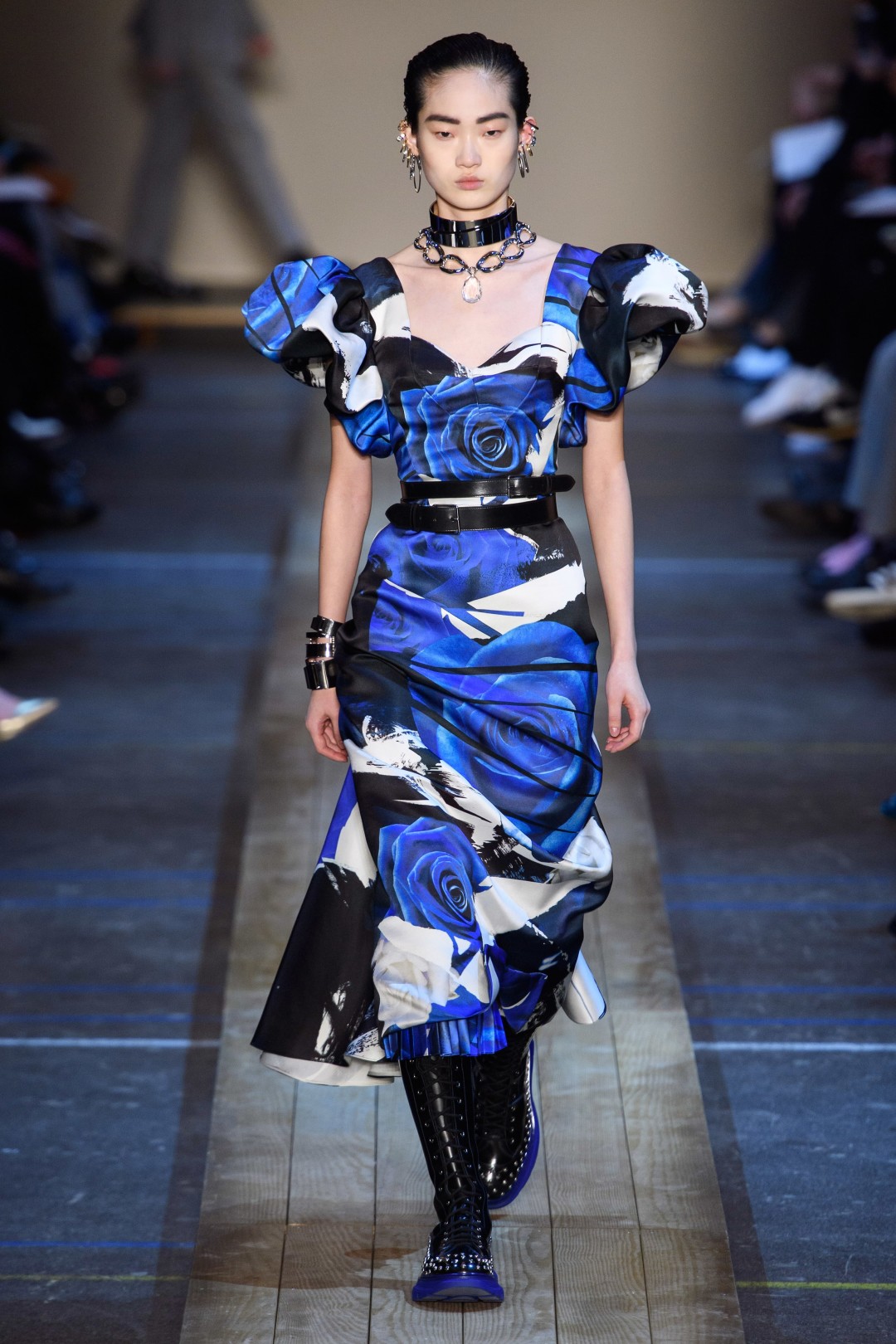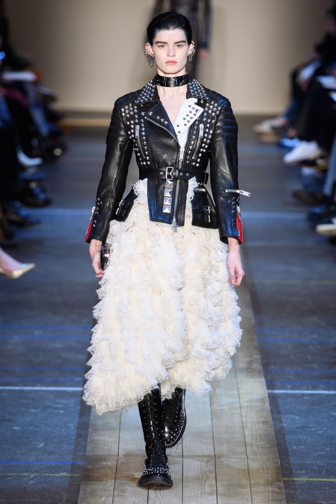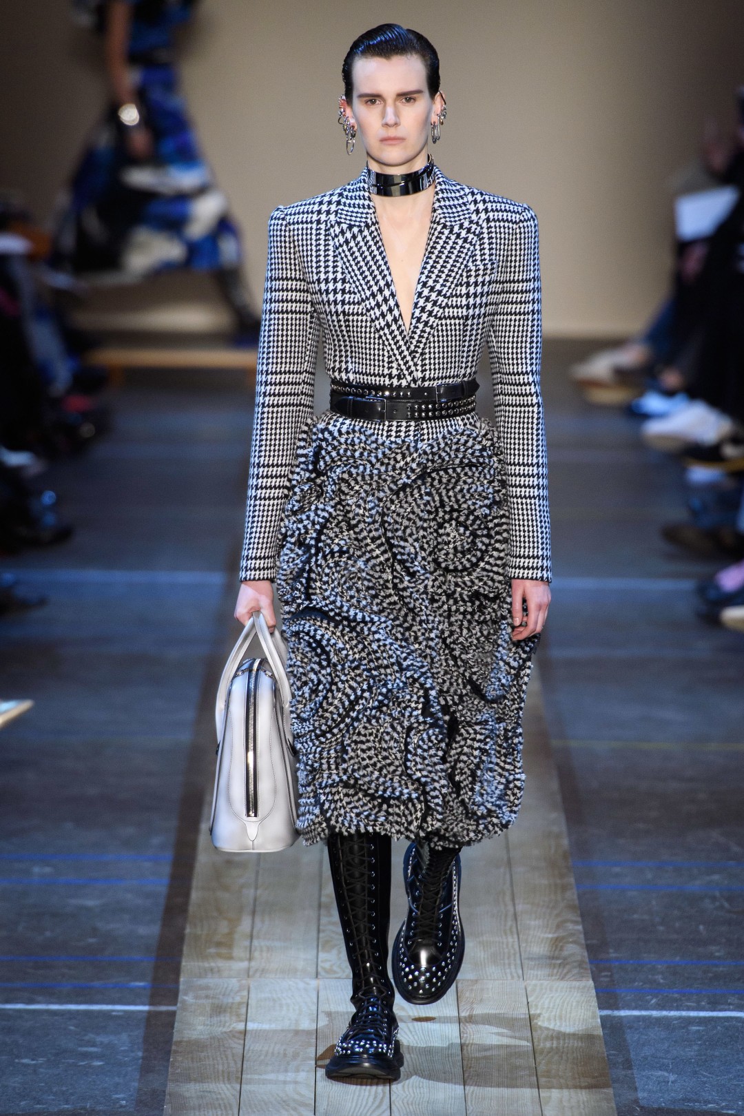 В парижском Лицее Карно, где в 2005 году Александр Маккуин презентовал коллекцию по мотивам фильмов Альфреда Хичкока, состоялось шоу преемницы дизайнера — Сары Бертон. На этот раз она акцентировала внимание не столько на вещах, сколько на местах их создания: перед показом команда Alexander McQueen выложила в Instagram процесс подготовки коллекции с геотегами фабрик William Halstead, John Foster, Bower Roebuck, Savile Clifford и Joshua Ellis, а вместо стульев разложила рулоны их тканей.