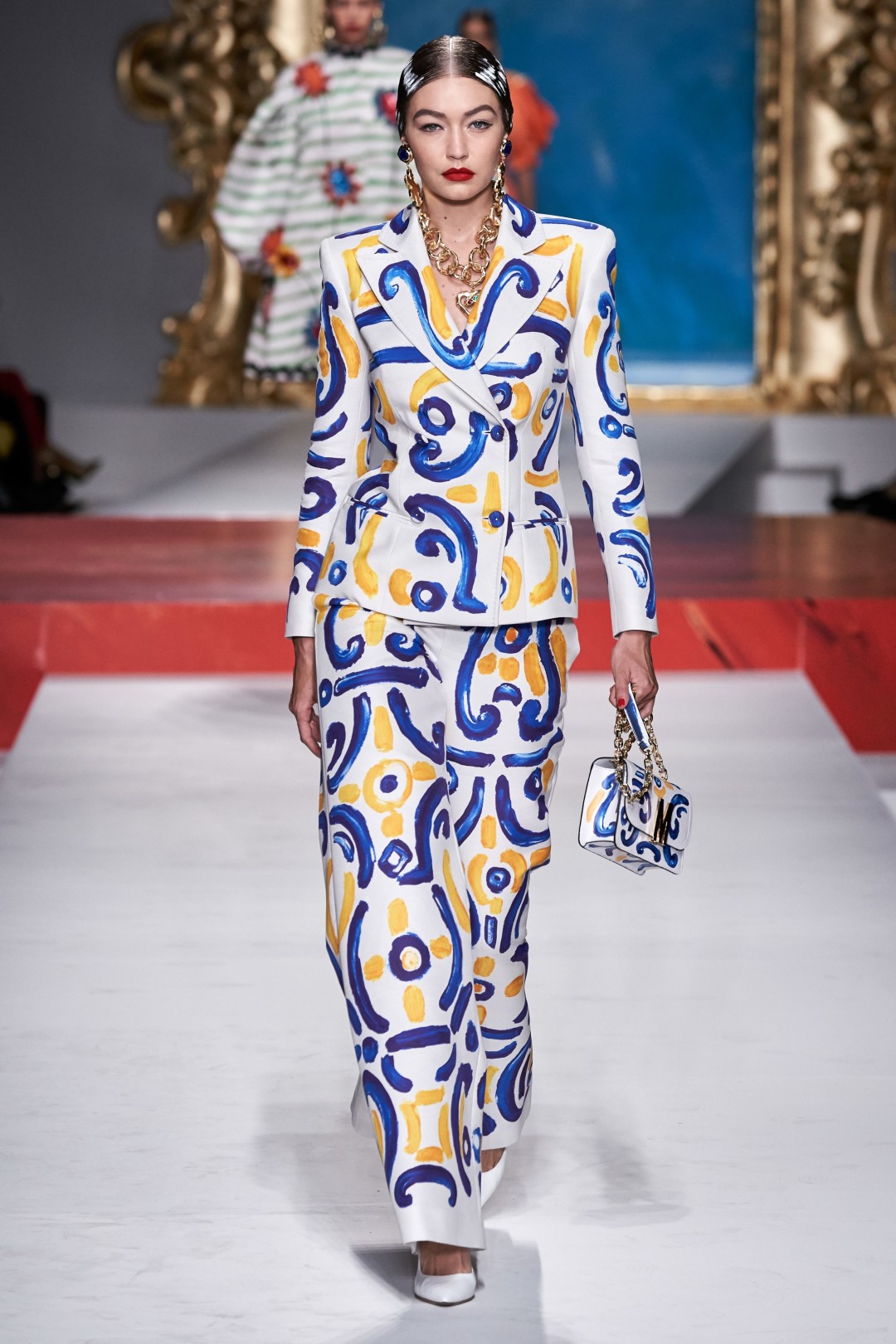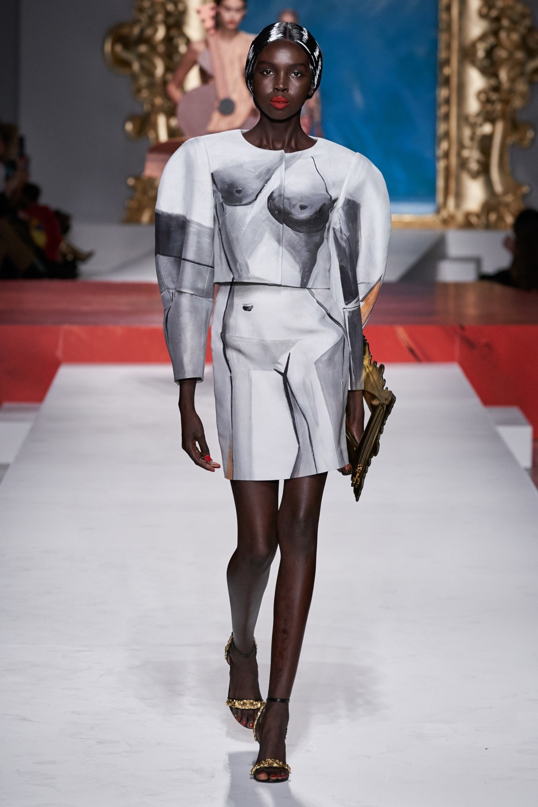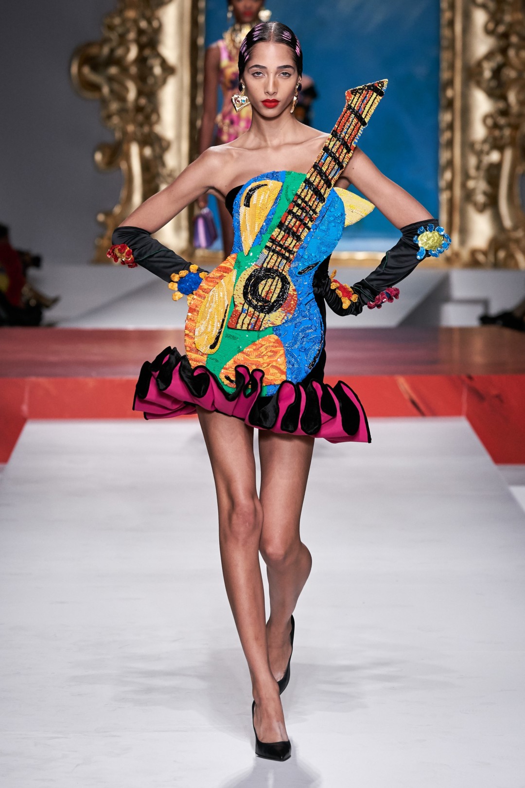 Само шоу выглядело как выставка картин Пабло Пикассо: Moschino перенесли его «Авиньонских девиц», «Арлекина», «Девушку с мандолиной», «Девушку перед зеркалом» и даже эскизы декораций для балета «Квадро фламенко» на одежду, вручную нарисовав принты перед их оцифровкой. Об этом Джереми Скотт рассказал на бэкстейдже показа в окружении своих муз (ведь они должны быть у каждого художника!): Ирины Шейк, Стеллы Максвелл, Аду Акеш, Алеси Кафельниковой, Кайи Гербер, Беллы и Джиджи Хадид, которая закрыла шоу в свадебном платье.