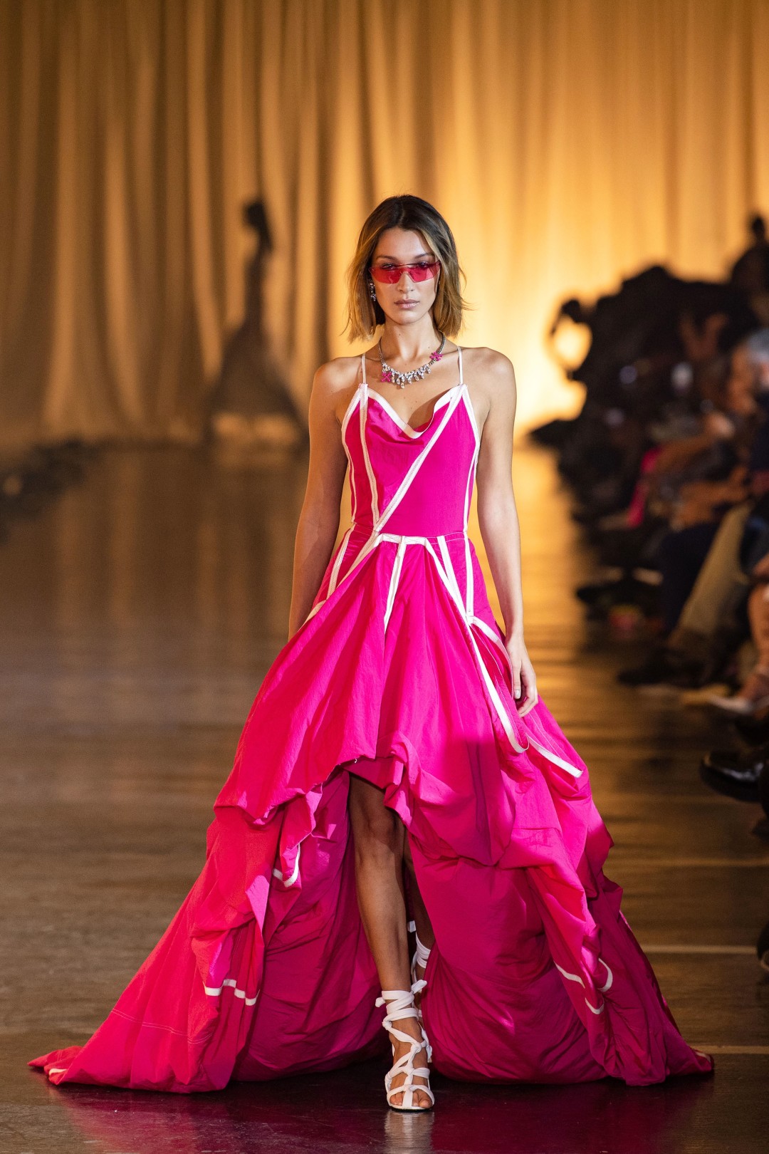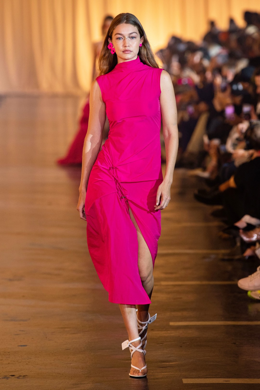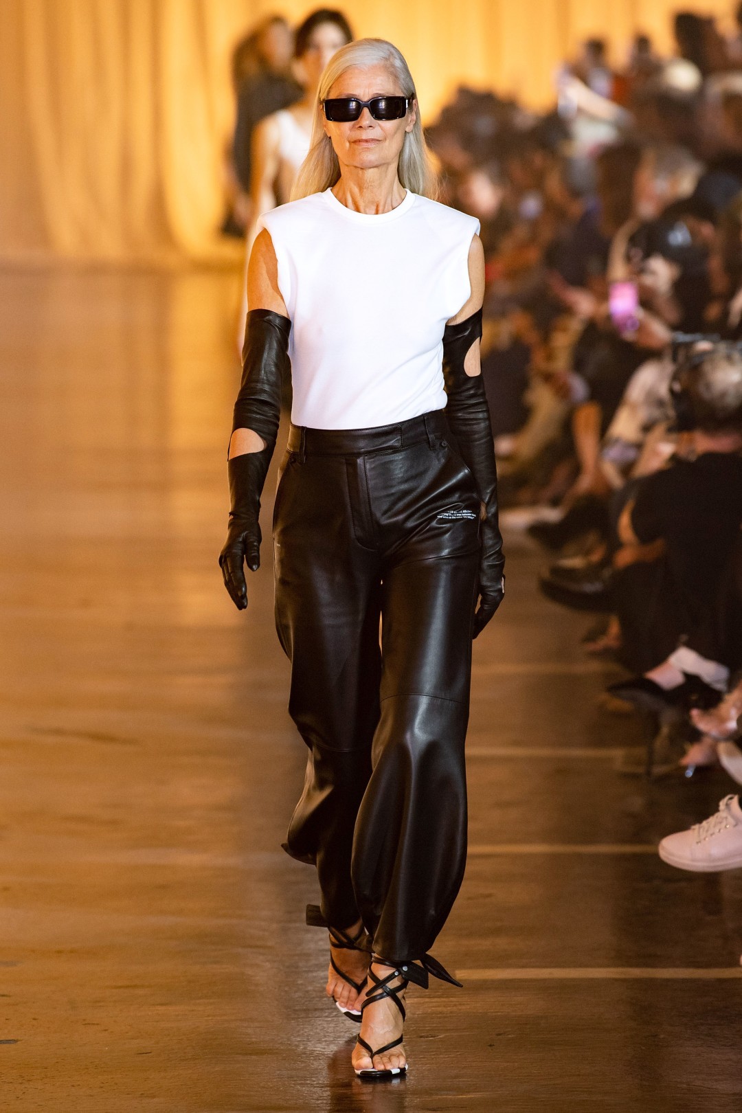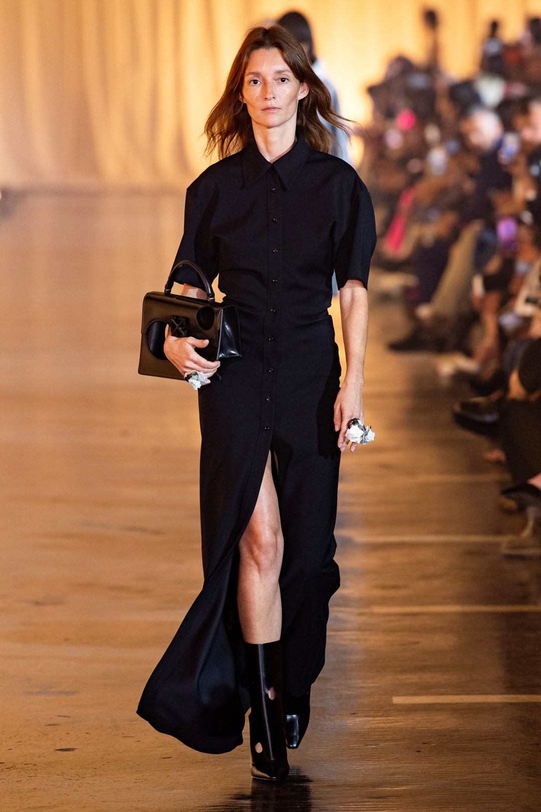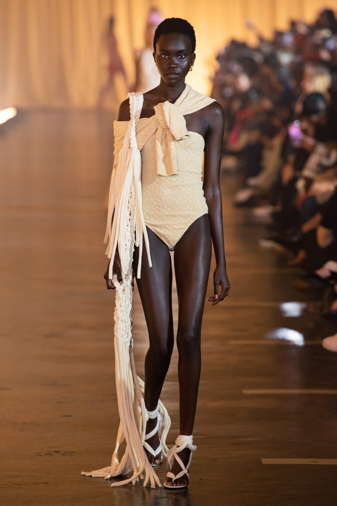 Однако шоу под названием «Meteor Shower» («Метеоритный душ») состоялось — и началось с проигрывания речи первой афроамериканки, совершившей полет в космос, Мэй Кэрол Джемисон, и выхода девушки с южносуданскими корнями, признанной главной моделью 2018 года, Адут Акеч. После ее мнималистичного платья-рубашки на подуиме появились более провокационные и спорные вещи: желтые «валенки», длинные перчатки, оверсайзовые футболки и выбеленные джинсы, в которые будто бы и правда попал метеорит. Каждый из этих нарядов имел круглый разрез (иногда даже несколько!) и был стилизован такими же сумками, которые сами Off-White назвали «нефункциональными» (зато честно!).