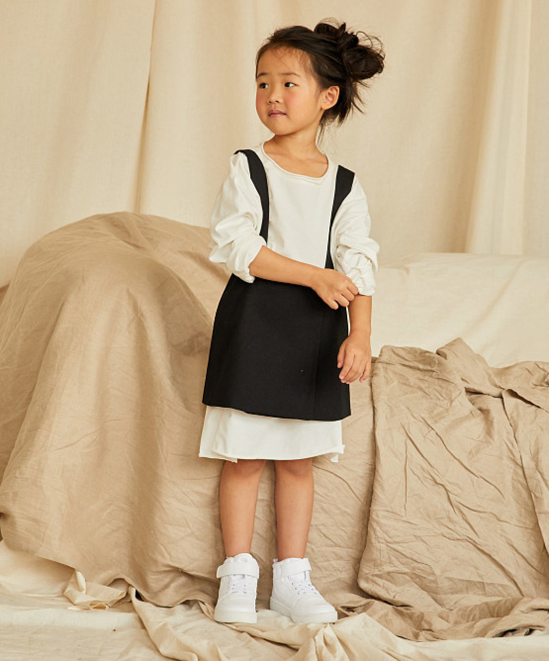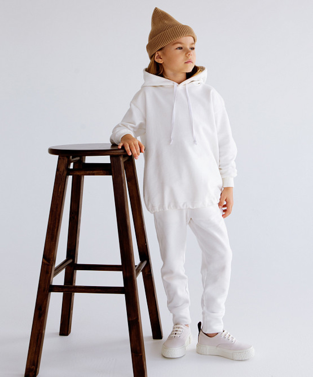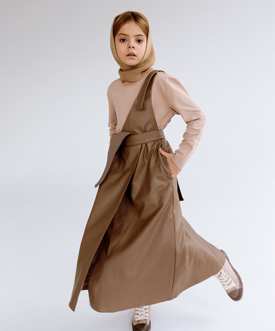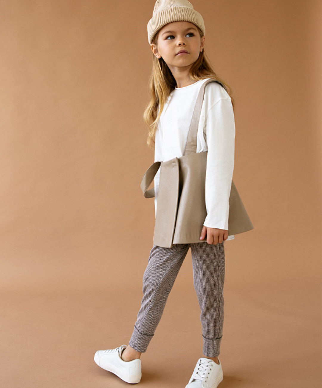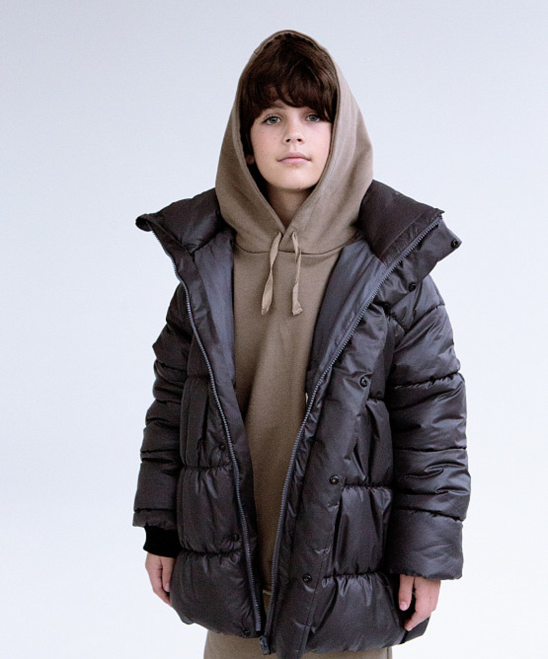 В ней действительно немало фирменных вещей UShatava, но в детских размерах: это стеганые пуховики, перевязанные длинным поясом, однотонные толстовки, доступные в кремовых цветах, архитектурные сарафаны, сделанные из эко-кожи, и даже оверсайзовые костюмы, которые можно носить на топ или рубашку А-силуэта. При этом дизайнеры «скопировали» не только женскую, но и мужскую линию: для мальчиков придуманы кальсоны, лонгсливы, сорочки и куртки — в общем, все, что нужно для любого повода и комфортной жизни. Просмотреть ассортимент можно на сайте UShatava и в магазинах марки (в Петербурге — на набережной реки Мойки, 59), а цены на него варьируются от 1500 рублей (за шапку) до 10 500 (за пуховик) рублей.