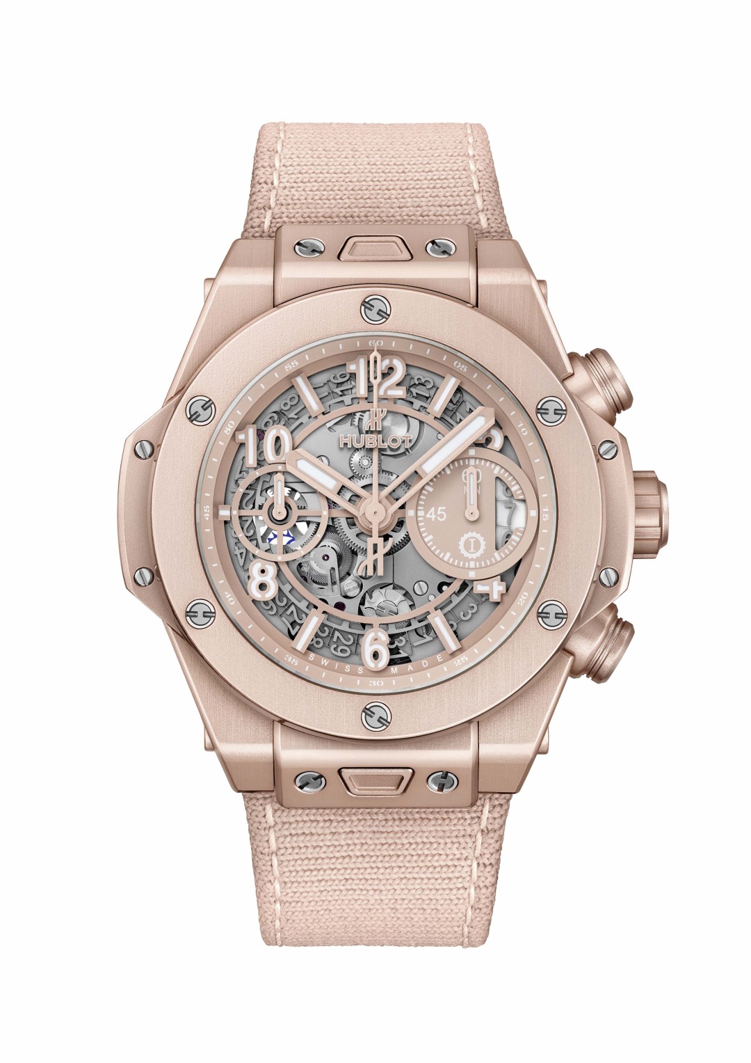 Часы из инновационного анодированного алюминия разработаны Hublot вместе с главой тюнинг-ателье Garage Italia Лапо Элканном. Главный денди Италии выбрал для двухсот хронографов лимитированной серии пастельно-розовый цвет — агендерный, как и 42-миллиметровый диаметр.