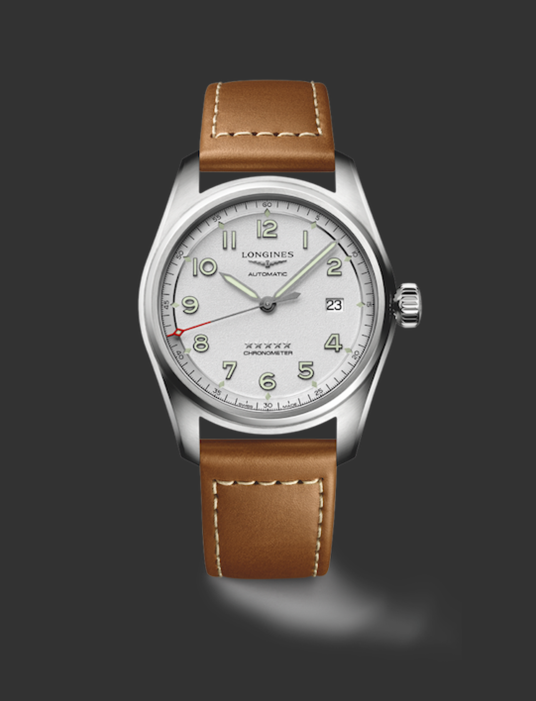 С хронометрами Longines летали великие: в 1932-м Амелия Эрхарт следила по ним за длительностью одиночного беспосадочного рейса через Атлантику, а Говард Хьюз шестью годами позже ставил рекорд воздушной кругосветки. Новые часы делают флешбэки в ту славную эпоху массивной заводной головкой, крупным кольцом вокруг стекла и шрифтом на циферблате. А вот размером они больше предшественников. Но уверены, что диаметр 42 миллиметра даже на женском запястье вызовет куда меньше споров, чем версус «авиатор/авиаторка»!