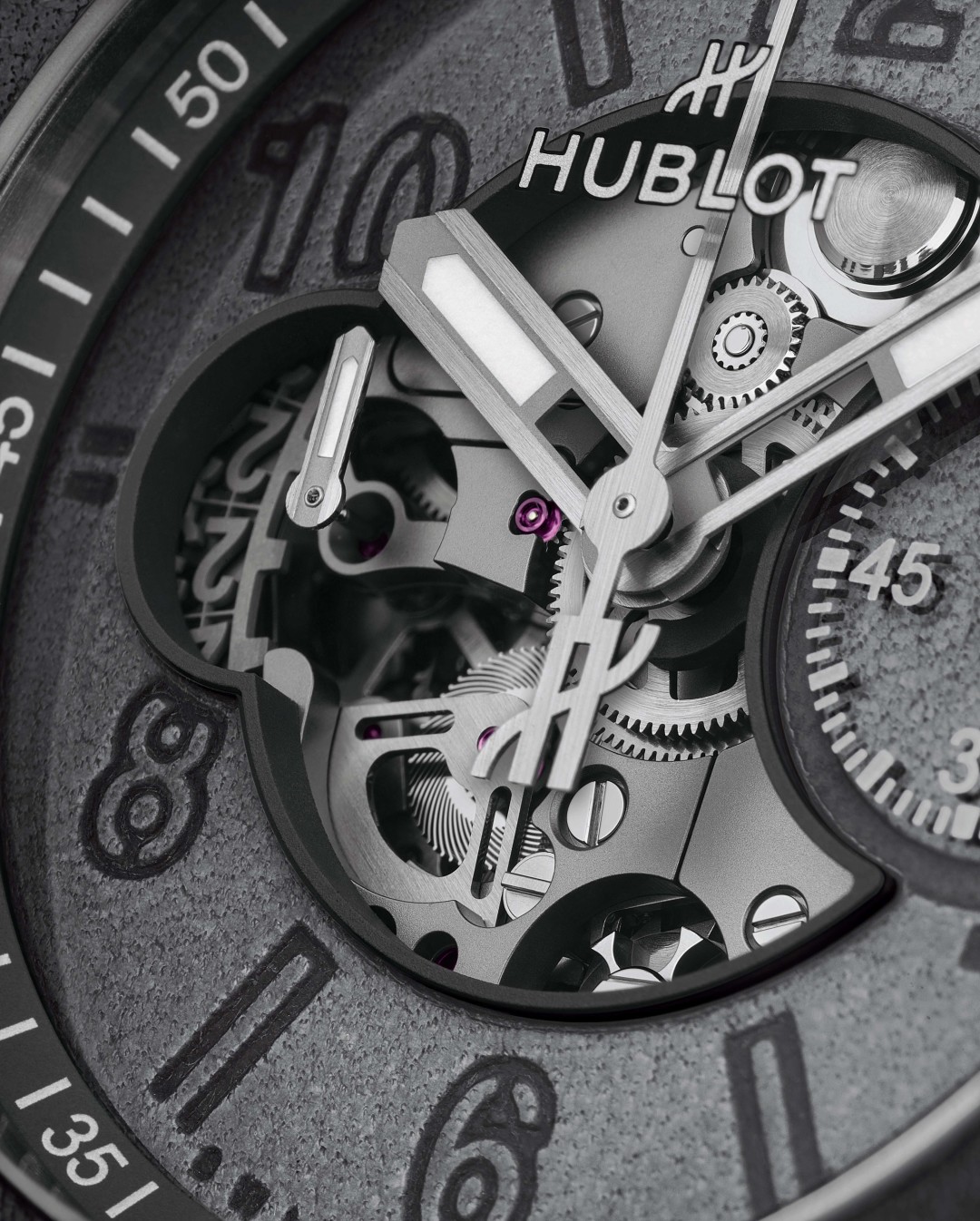 Титановый безель новых Big Bang Unico Berluti Aluminio дополнен уникальным механизмом Unico, который находится под двумя кусочками сапфирового стекла. Ремешок часов представлен в двух вариантах: из полированной кожи и из патинированной с рисунком Scritto (исключительно для Японии). При создании модели использовалась инновационная технология дома Berluti. Ее суть в кристаллизации оттенков кожи, благодаря которой цвета сохраняют свой первозданный вид спустя многие годы.