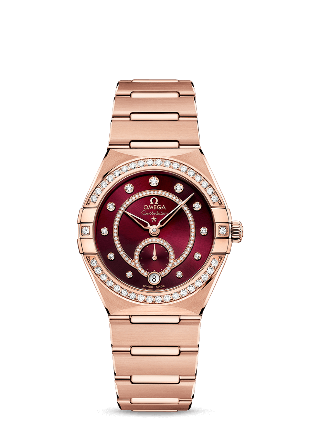 Скошенные полумесяцем края модели Constellation — трейд-марк с 1982 года. Остаются им и в новом корпусе диаметром 34 миллиметра с секундным счетчиком на циферблате, где кольца, стрелки, метки и звезда Omega отлиты из того же розового золота Sedna, что и корпус с браслетом.