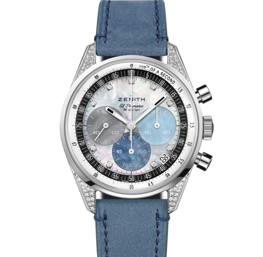 Специально к слету женщин-инфлюэнсеров Meet The Dreamers в Мадриде швейцарская мануфактура выпустила свой крутой высокоточный хронограф, способный измерять десятые доли секунды, с нежным циферблатом из четырех оттенков перламутра и бриллиантовым паве на ушках.