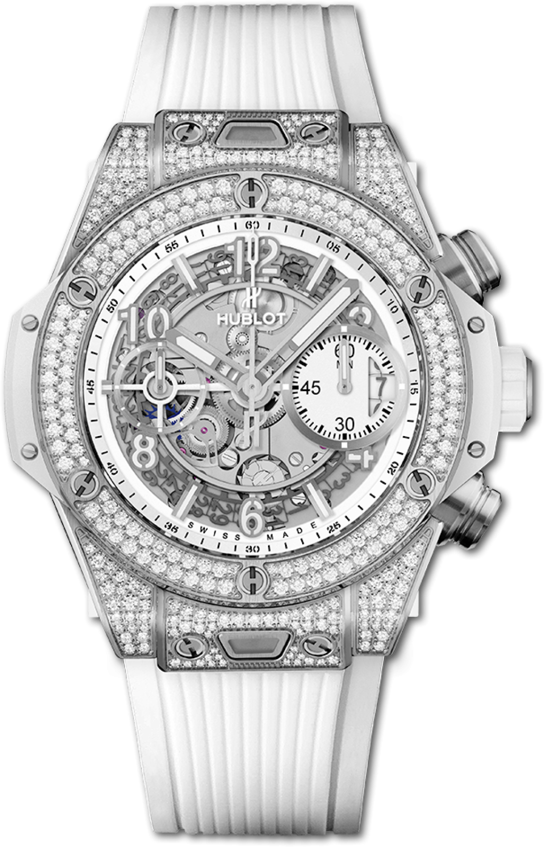 Флайбек-хронограф в крупном 42-миллиметровом корпусе не выглядит массивным из-за усовершенствованного калибра HUB1280: стараниями инженеров мануфактуры Hublot он имеет толщину всего 6,75 мм. Вторая причина, по которой часы кажутся воздушными, — скелетонированный циферблат с видимым колонным колесом. А третья — метель из 296 бриллиантов по корпусу и безелю из титана.