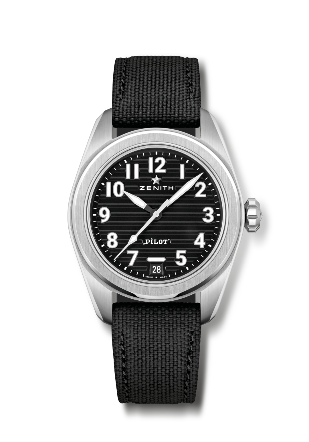 Новые Zenith Pilot Big Date Flyback понравились бы и пересекшему Ла-Манш в 1909 году Луи Блерио (большому поклоннику часовой мануфактуры), и современным авиаторам: крупной заводной головкой можно управлять, не снимая летных перчаток, функция флайбек позволяет обнулять и перезапускать хронограф за сотые доли секунды, запаса хода в 60 часов должно хватить на беспосадочную кругосветку, а цифры на опаловом циферблате с «канавками», похожими на рифленый фюзеляж, сохраняют видимость в любых погодных условиях.