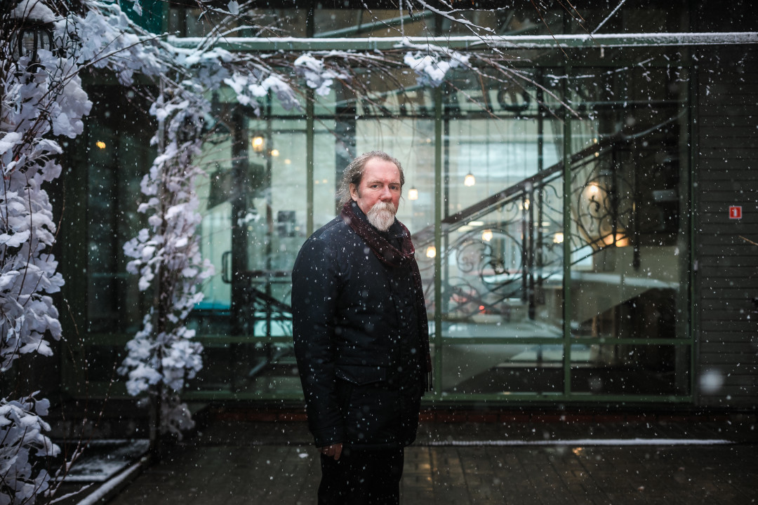 Кураторы выставки обозначили героев моей выставки как «богема 1990-х». На самом деле это был круг моего общения, те, кого называют творческая интеллигенция: художники, поэты, журналисты, галеристы. Портреты у меня постановочные, сделаны в спокойной обстановке, с продуманным фоном. И с людьми, которых я знаю. Совсем незнакомого человека снять не могу: вряд ли получится что-то хорошее, потому что он не верит мне до конца, и я как-то стесняюсь. А свои люди – другое дело. Вот на выставке есть снимок: пятеро обнаженных до пояса мужиков сидят на диване. Они разделись, потому что мне доверяли, а с чужим человеком так не сделаешь.