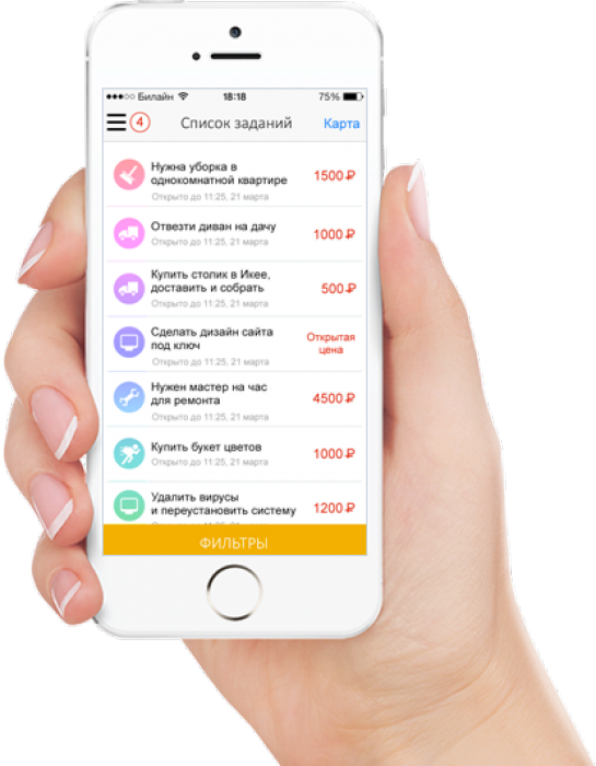 Специализации у исполнителей самые разные. Здесь можно найти не только мастеров бытового ремонта, но и курьеров, визажистов, клинеров, юристов, дизайнеров. Впрочем, для нестандартных задач исполнители тоже найдутся. Например, отстоять очередь за новым iPhone или придумать сценарий для новогоднего корпоратива. Исполнительнице Марине однажды и вовсе пришлось везти к ветеринару дикую кукушку на сносях: “Вообще я экономист, но решилась на это задание, потому что очень люблю животных”.