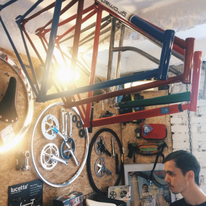 Эти два парня - классические представители fixed gear-культуры. У них свой магазин по продаже рам и комплектующих, мастерская по ремонту велосипедов, помещение для вечеринок, и работа велокурьером им не чужда».