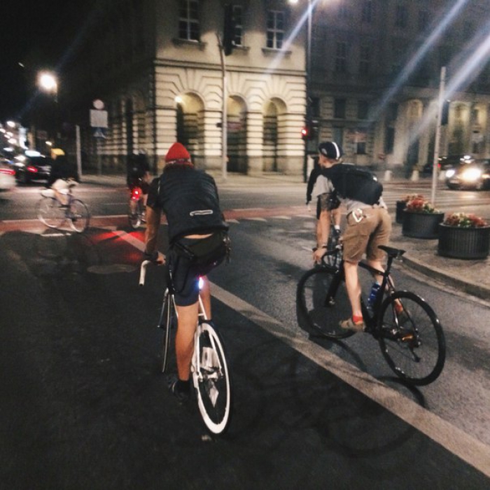 «Мы провели в Варшаве два замечательных дня, передвигались пешком, на фиксах и на авто. Были на окраине, в центре, в старой части, посетили центр науки имени Коперника и планетарий. Разумеется, все это для нас было интересно, но хотелось пообщаться и с местными жителями, которые, как и мы принадлежали бы к субкультуре любителей фиксов. Наши поиски обвенчались успехом! Вдоль Вислы разделяющую Варшаву на две части, организован досуг для молодежи. Здесь мы нашли белоруса Пашу белорусский, недавно переехавшего в Варшаву, и поляка Ясу, понимавшего русский язык, но общавшегося с нами исключительно при помощи перевода с Пашей.