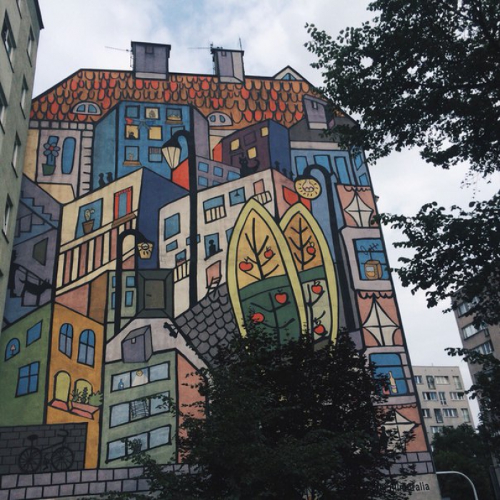 «Проснувшись рано утром, мы оказались в самом сердце польского футбола, а парковка, бывшая ночью пустой, заполнилась передвижными тележками. Феноменальные современные инстинкты вывели нас в сторону центра, где мы начали искать интернет и пищу. Впечатления: бесконечные велодорожки, вежливые водители, необычной красоты европейские девушки, разнообразие гастрономических изысканий. Только в воздухе немного суетливо, а машины с мигалками периодически пронзают пространство города».