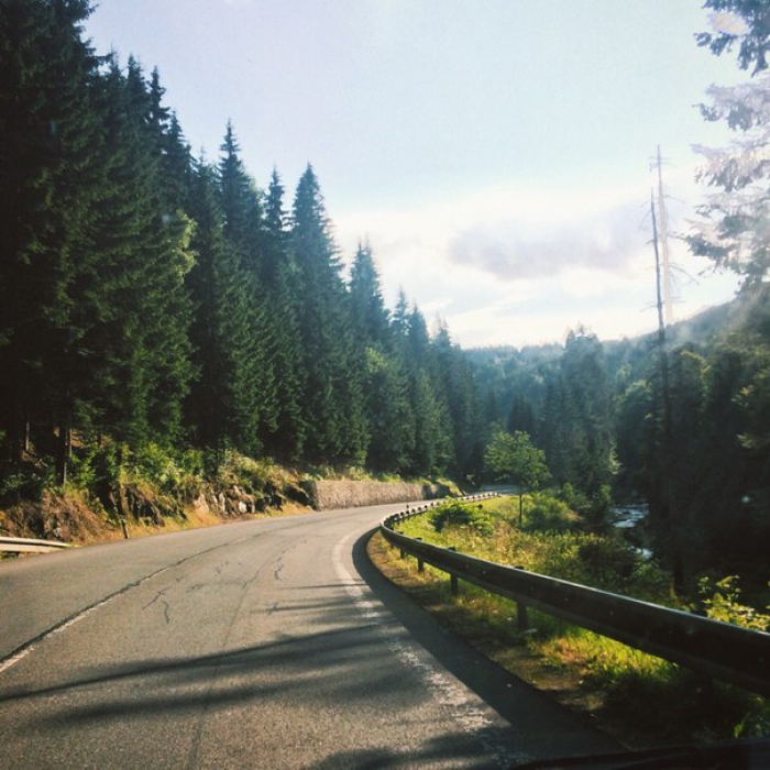 «Съезжайте, быстрее сворачивайте с автомагистрали, это самые скучные дороги на свете! Только не забудьте заранее заправиться топливом, иначе придется пешком идти километр до заправки. Это фантастически красивые дороги и местность, я словно Джереми Кларксон, пронзаю пространство асфальтом сквозь степи и леса, только в реальности у меня большой и высокий бус, а не чистокровный итальянский табун из нескольких сотен лошадей ярко красного цвета с максимально низкой посадкой. Будьте осторожны на резких поворотах и не бойтесь резких перепад высот!».