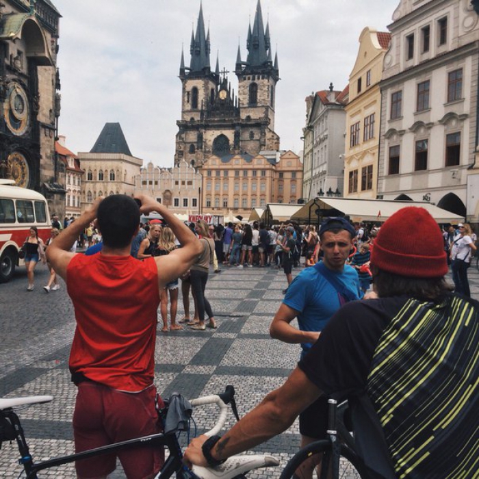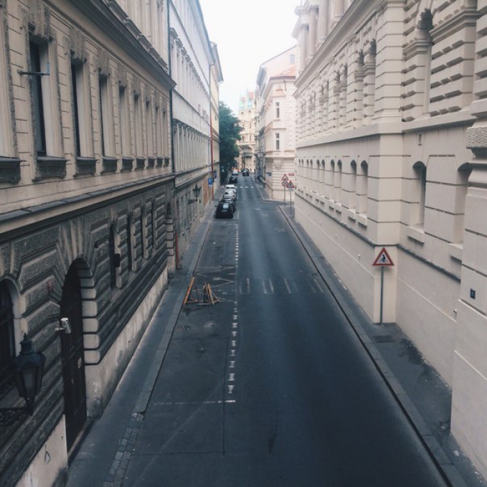 «Заезжая в ночную, готическую, мрачную Прагу, окружившая нас бесконечными замками, дворцами и церквями, мы придерживались того же принципа, что и в Варшаве. Искали местный Кремль и место парковки-ночлега под ним. С автомагистрали заехали на окружную кольцевую дорогу, и первым делом искали «Макдоналдс», чтобы прогрузить карту, и написать другу Тимура, Грише. Он из Северодвинска, они учились вместе в Казани семь лет, а теперь он жаждет новых знаний в Праге.