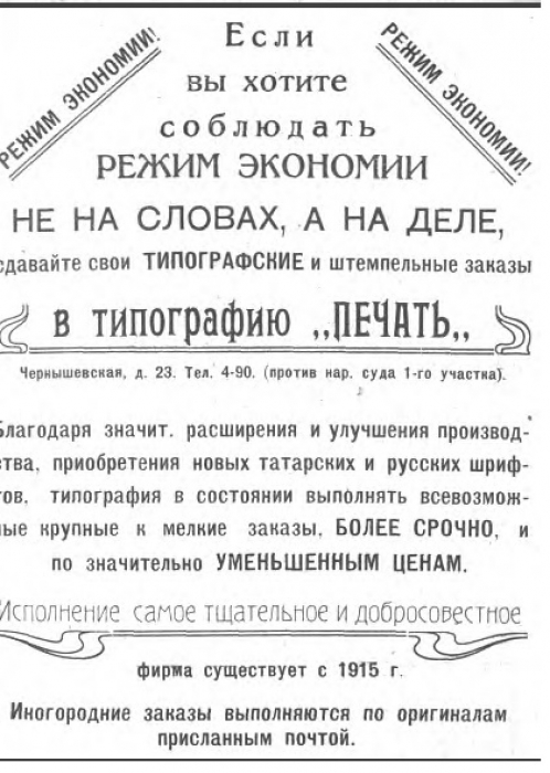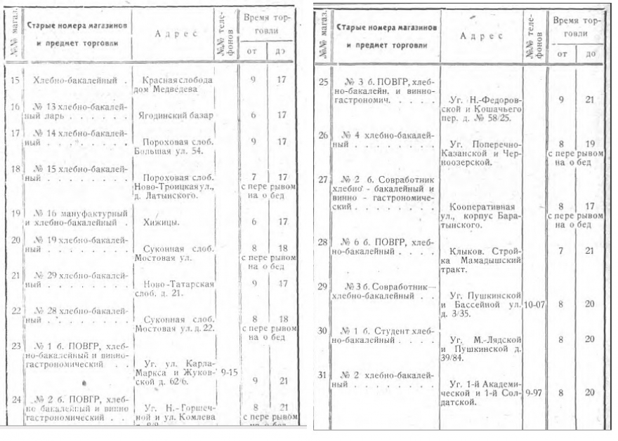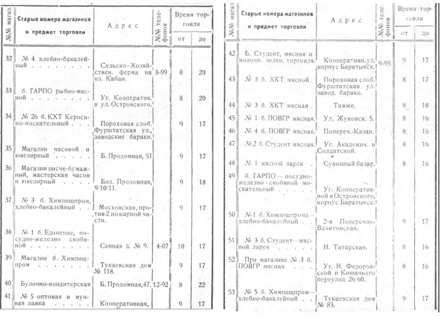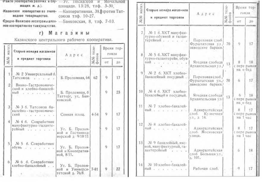 Для утоления голода справочник предлагает посетить восемь столовых при различных учреждениях (собственная столовая была у Казанского Подворья) и 25 пивных товариществ, разбросанных по всему городу. На улице Профсоюзной (тогда Малая Проломная), являющейся сейчас, из-за наличия «Соли» и «Jam бара», главным местом казанской молодежи, в 1925 году, согласно справочнику, поесть можно было только в одном месте - в столовой «Теремок».